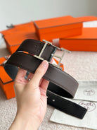 HM Silver Hadrien Reversible 38mm Belt Black Chocolate Leather 188079
