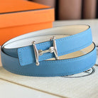 HM Silver Mors H buckle & Reversible 24 mm belt Blue White leather 125360