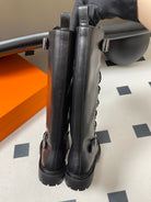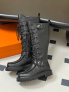 HM Lace Up Boots 25mm Belt Buckle Black Leather