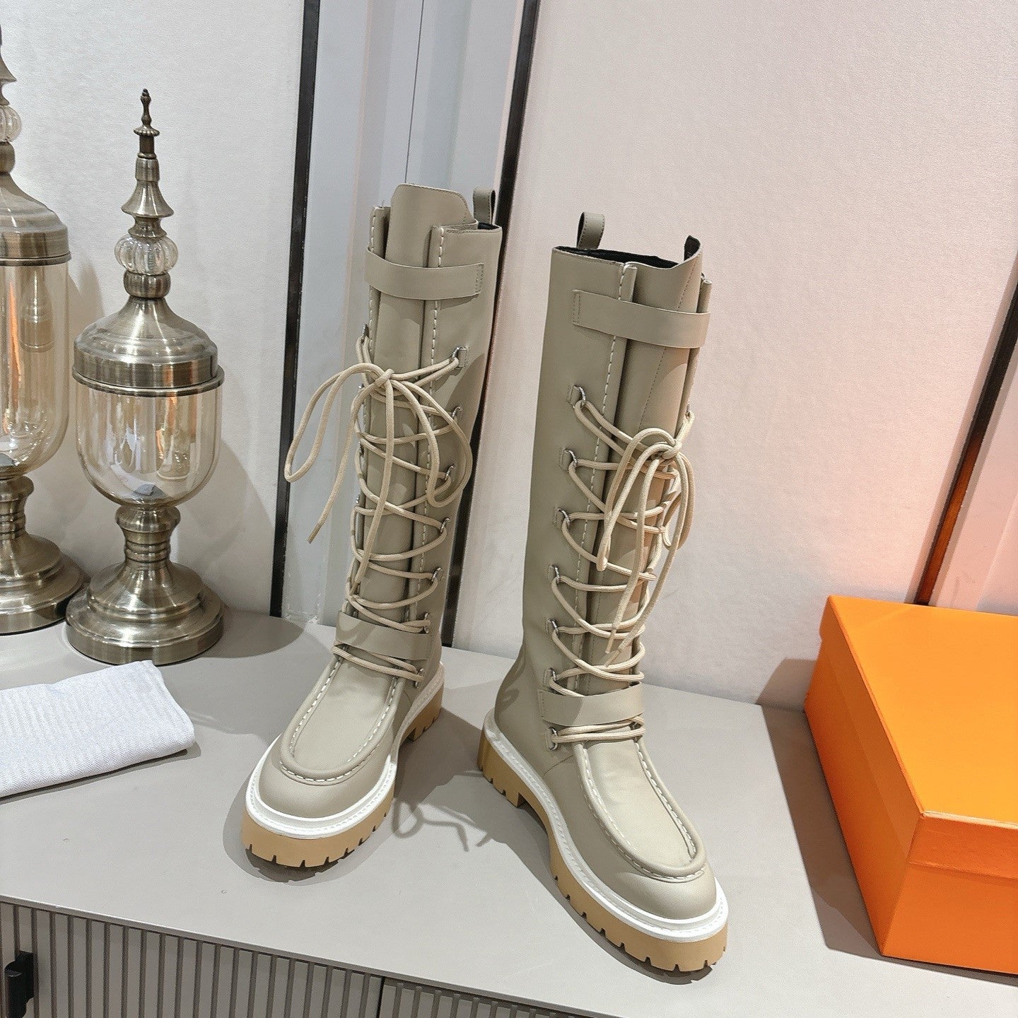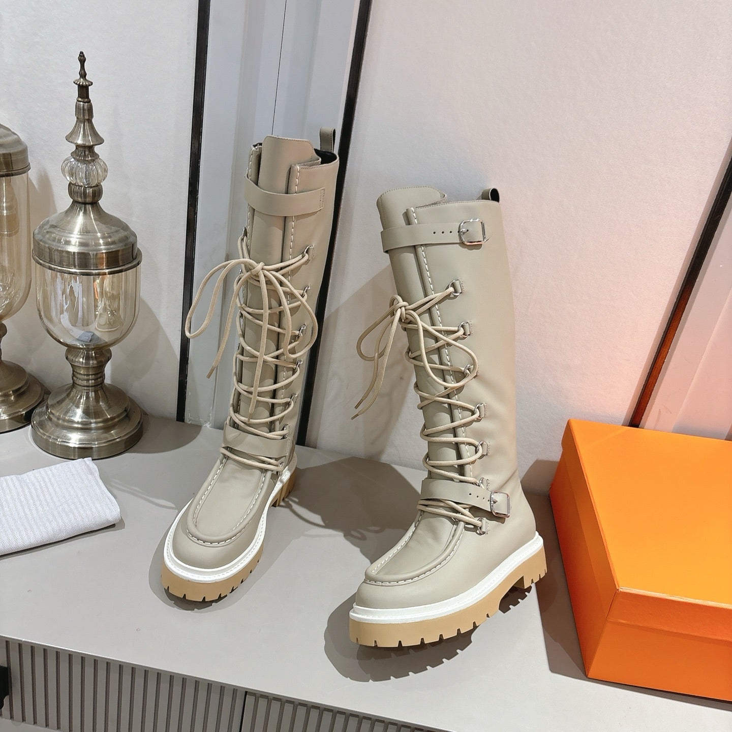 HM Lace Up Boots 25mm Belt Buckle Pale Khaki Leather 466588