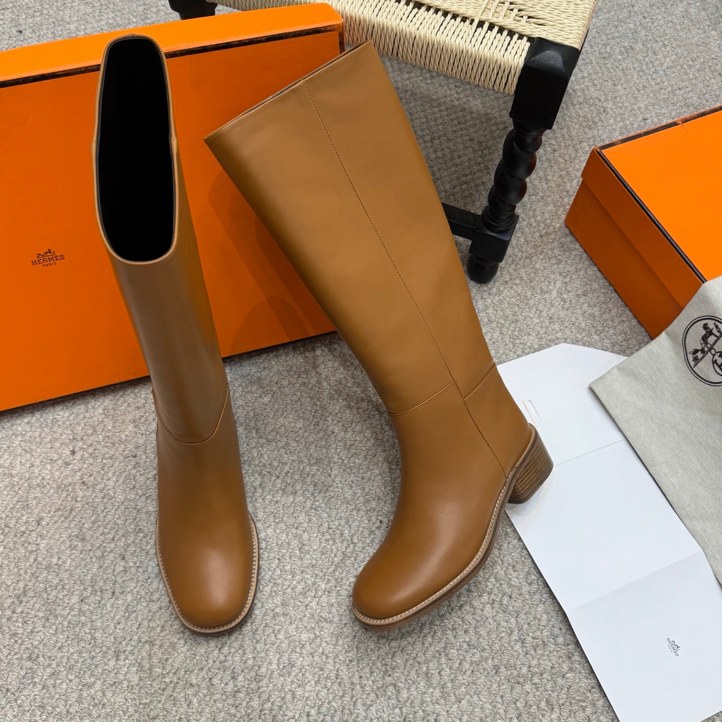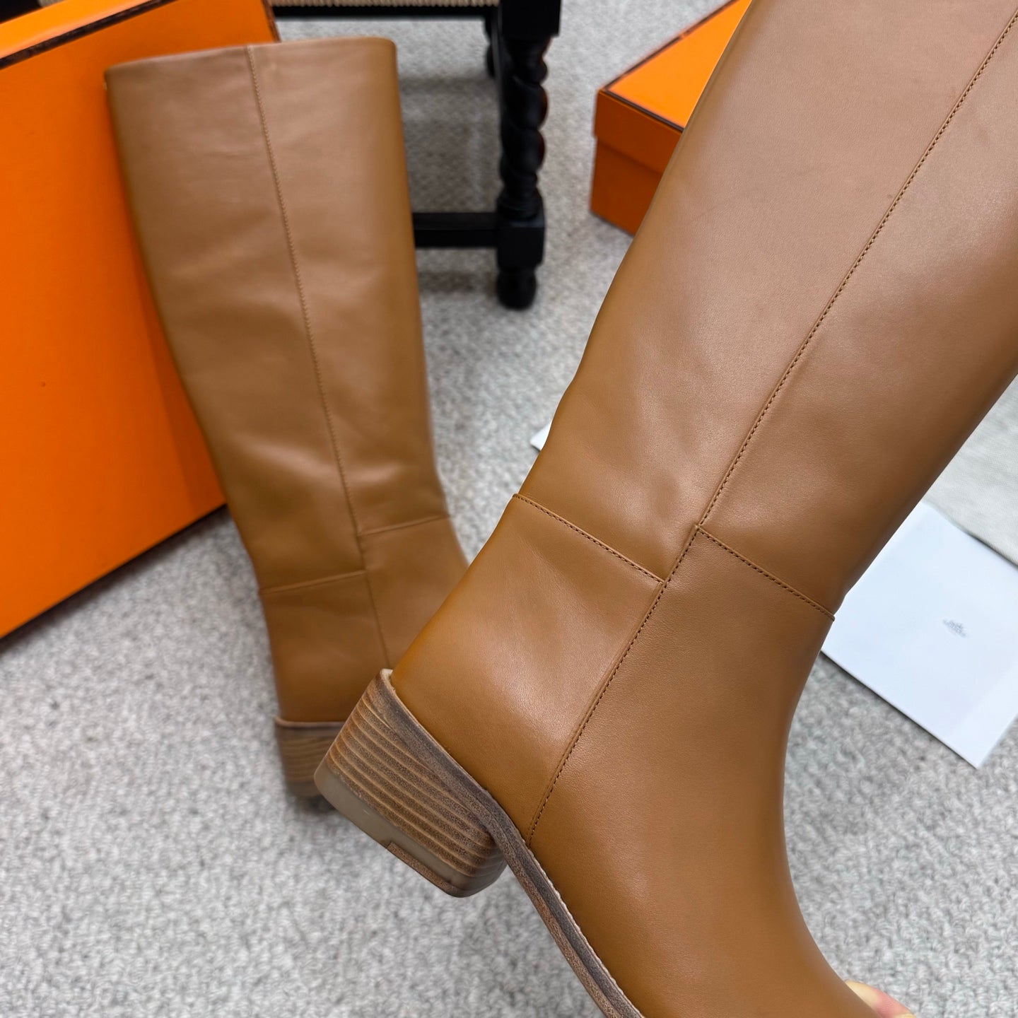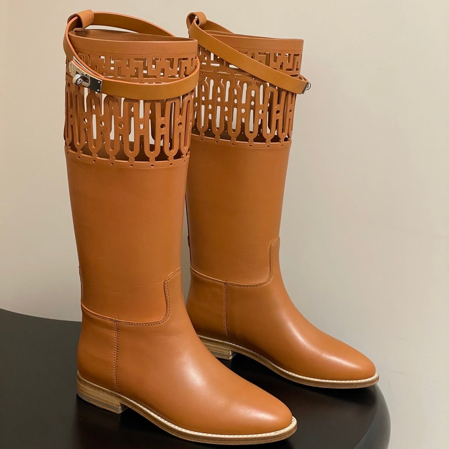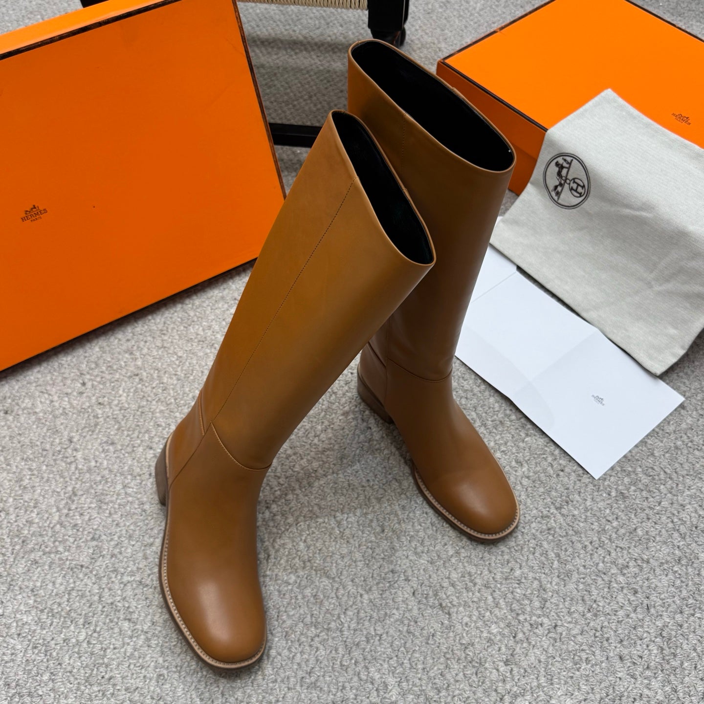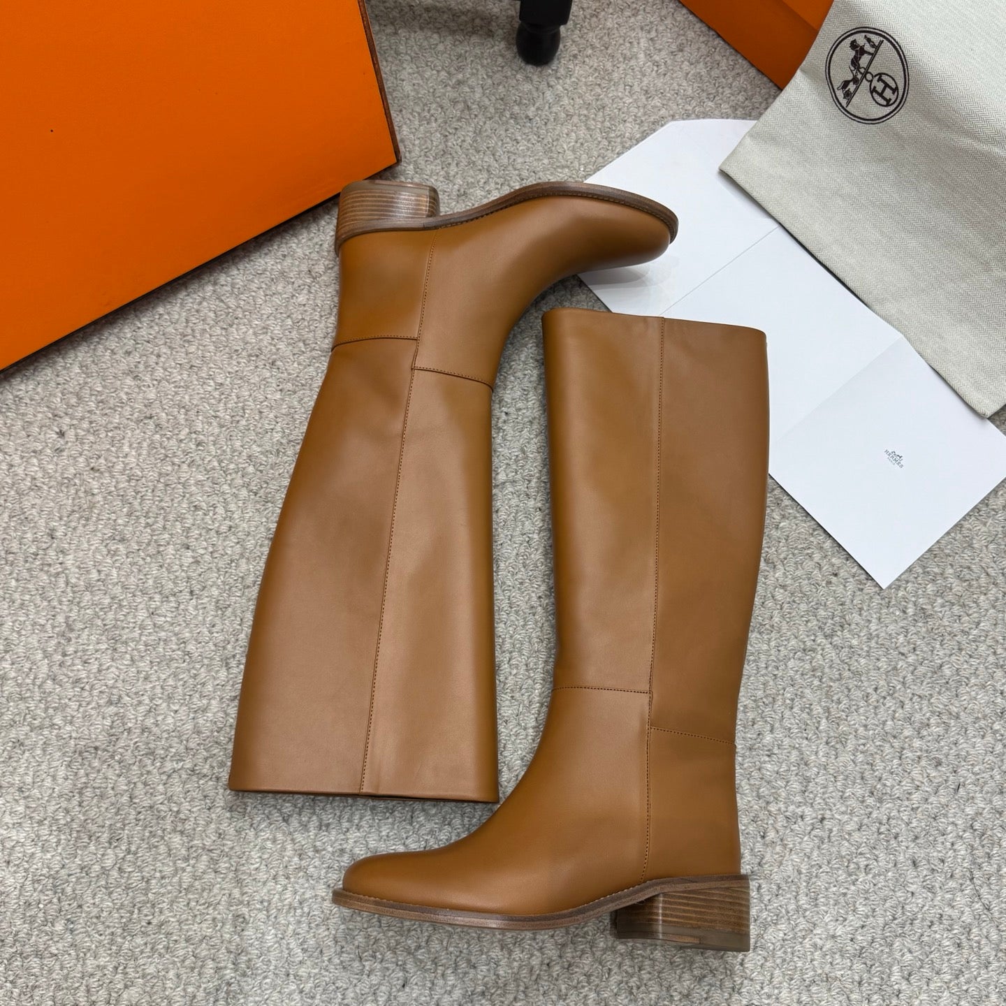 HM Jumping Boots 30mm Caramel Brown Kelly Buckle Calfskin 423263