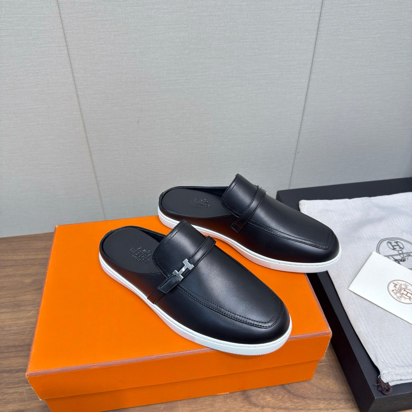 Hermes Oz Mule Black Silver Cowhide 756842