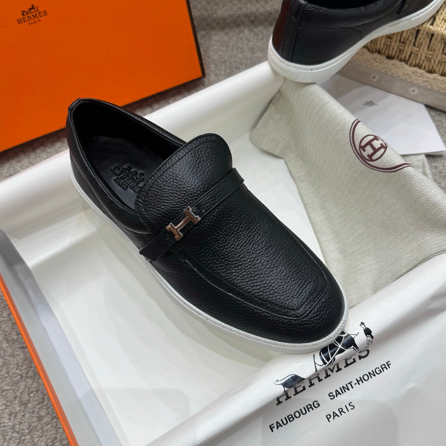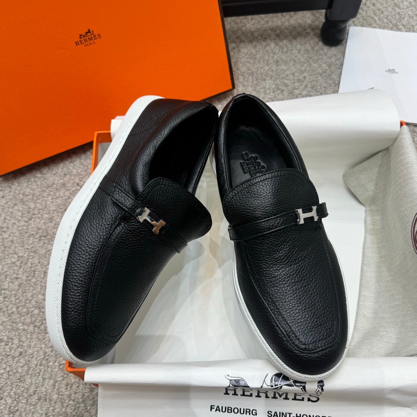 HM Job Loafers Black Grain Cowhide 523214