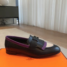 Royal Loafer Black Mix Purple and White Calfskin With Fringe Detail And Black Signature Buckle 509413