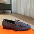 Royal Loafer Midnight Suede Calfskin With Fringe Detail And Silver Signature Buckle 509438