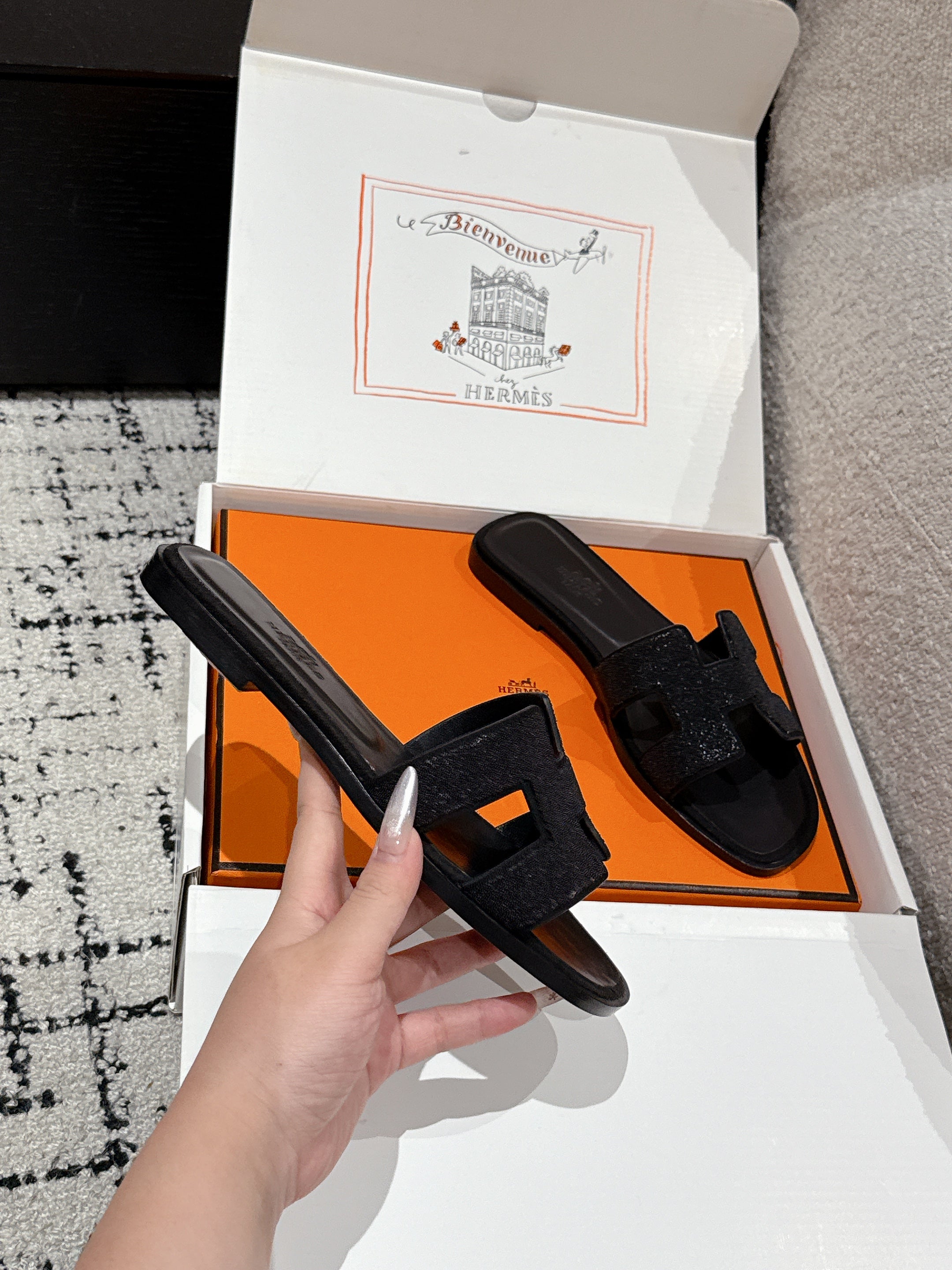 HM 25 Oran Glitter Sandal All Black Calfskin