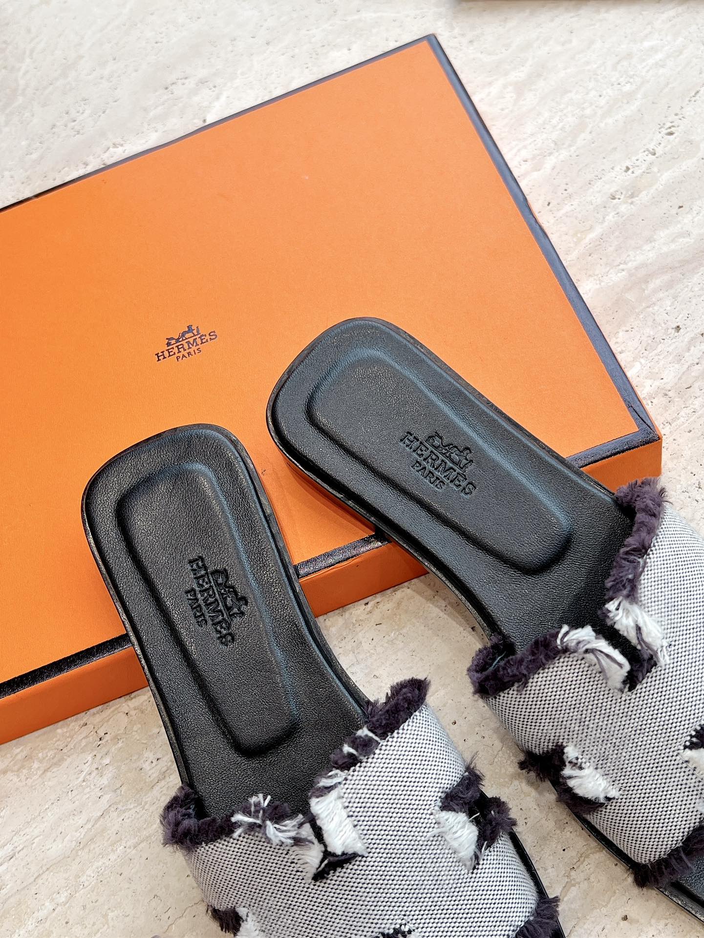 HM 25 Oran Sandal Black Calfskin White Denim