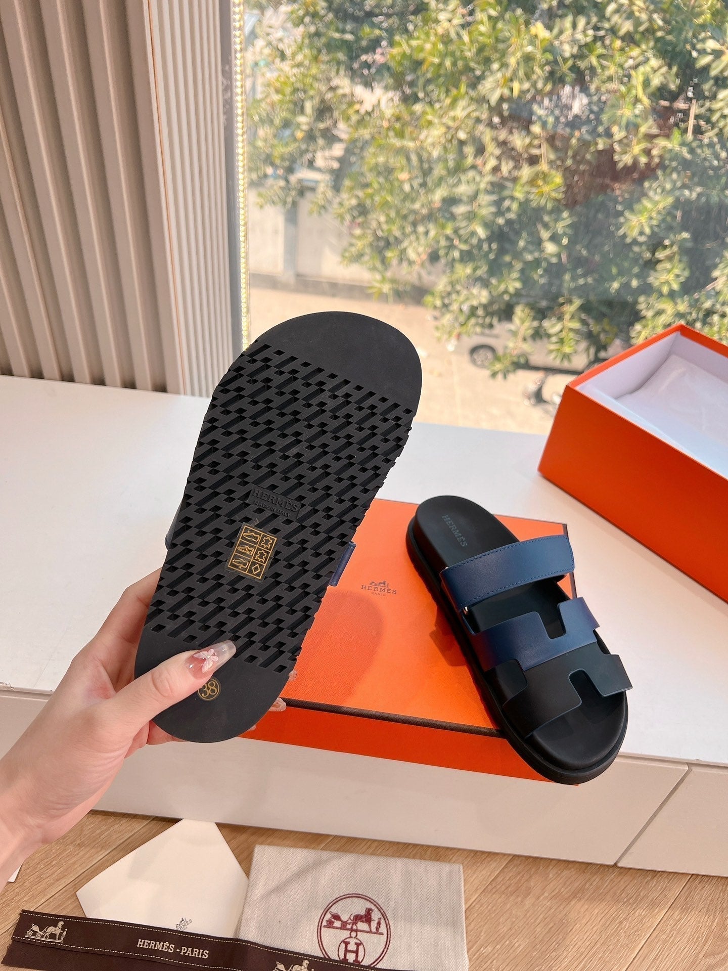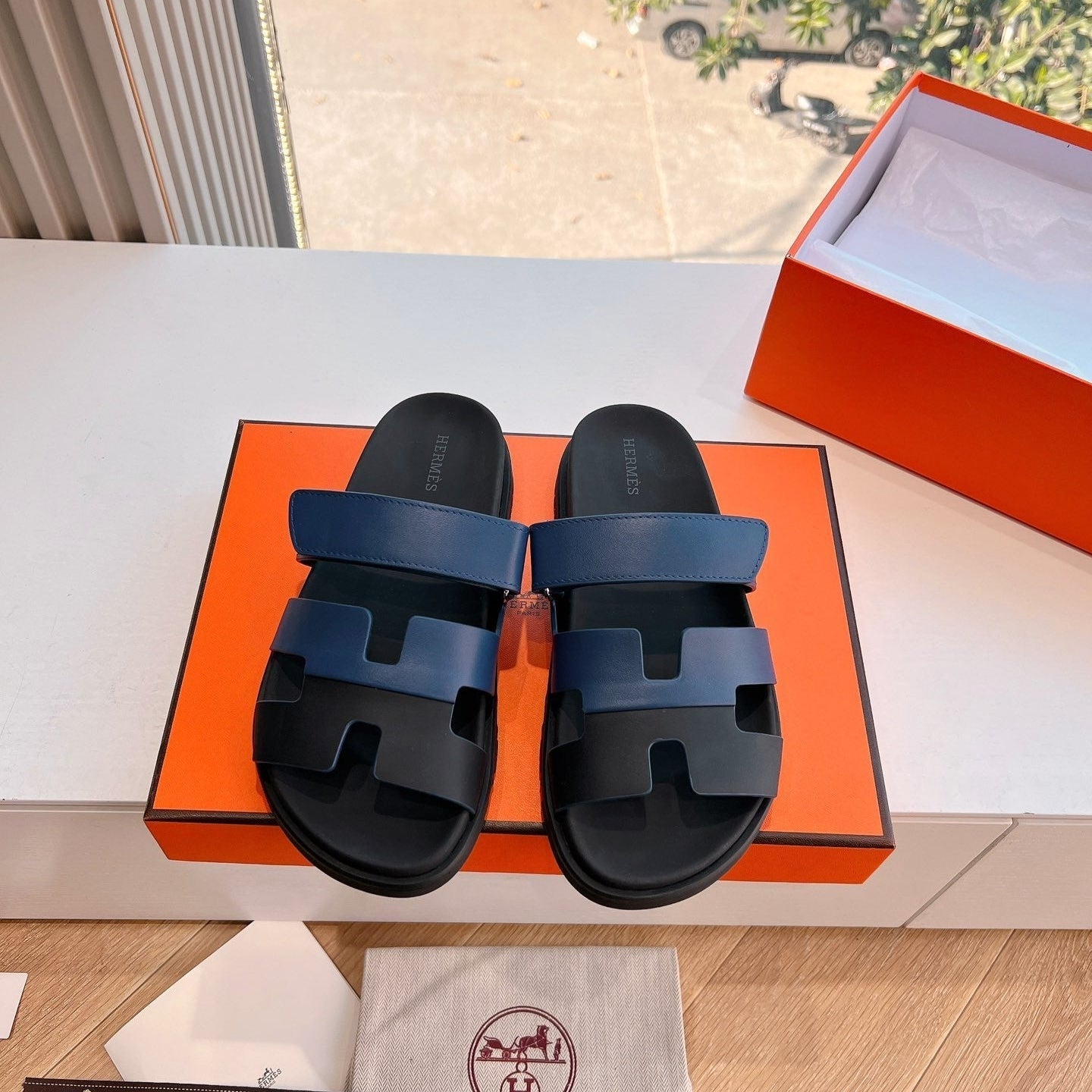 HM Chypre Sandal Navy Blue mix Black Calfskin 202817