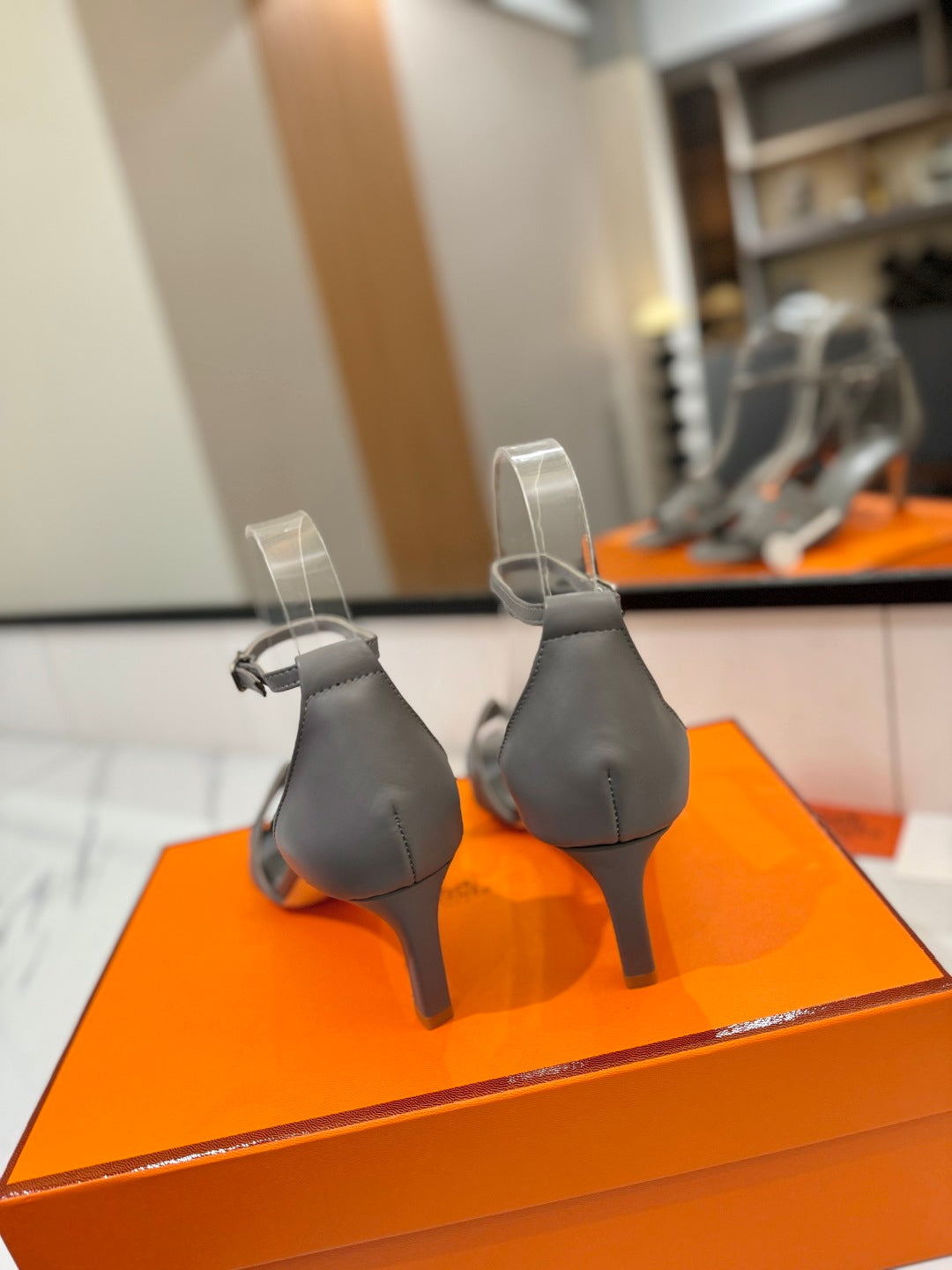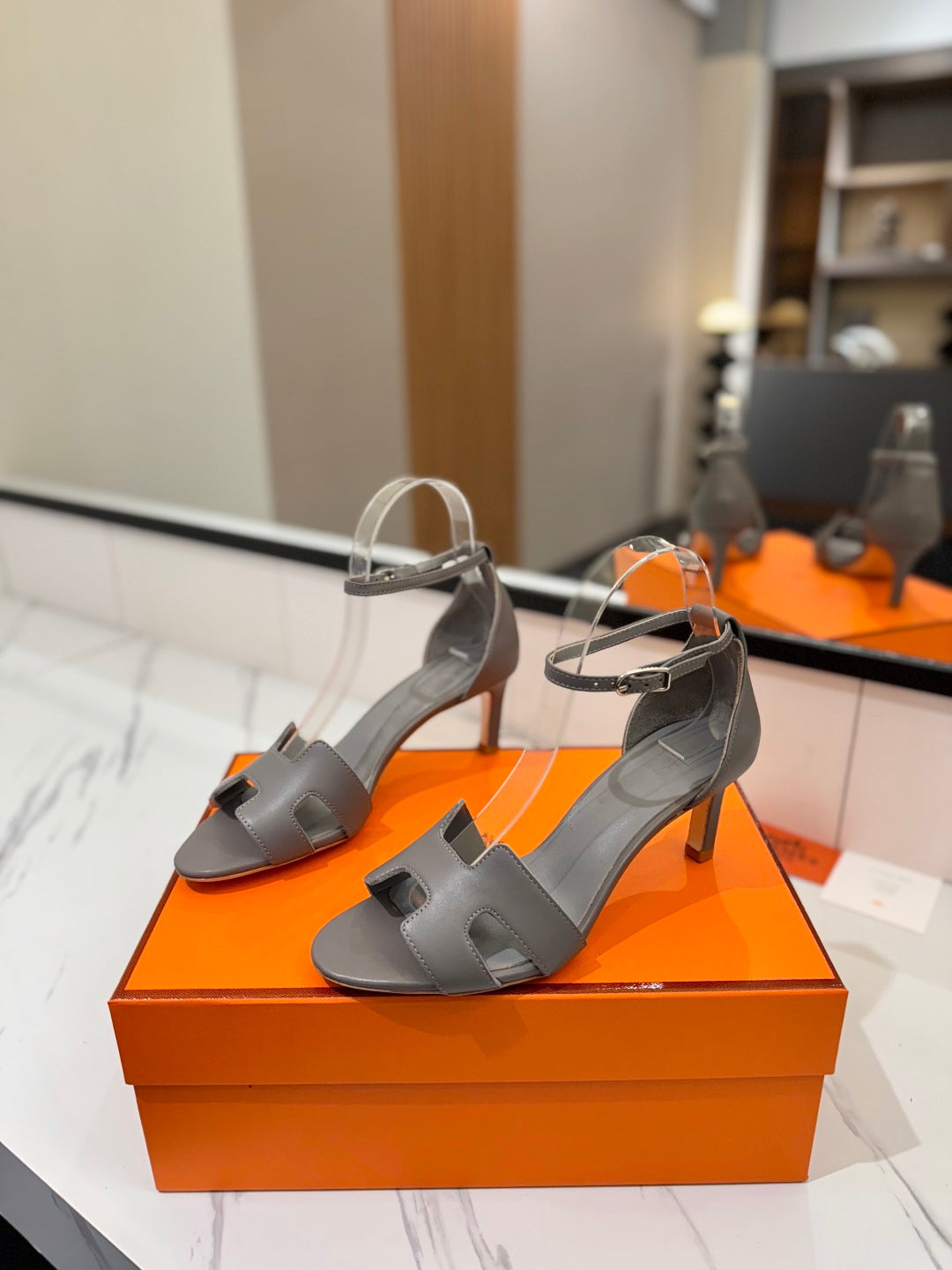 HM Joy 65mm Heeled Sandals Gray Flat Cowhide 294933