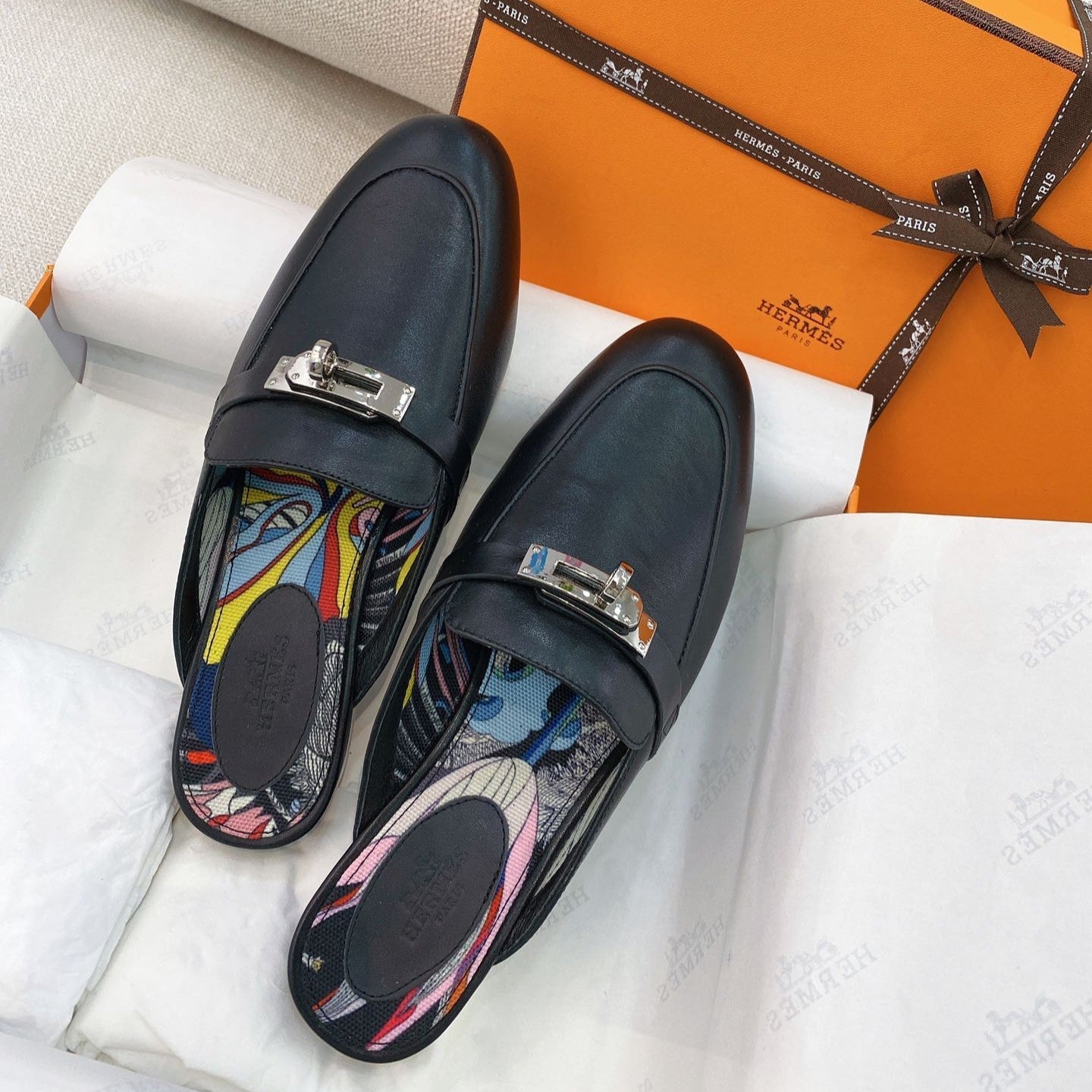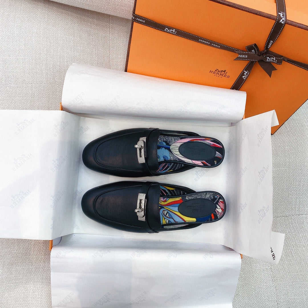 HM OZ Mule Black Calfskin 372938