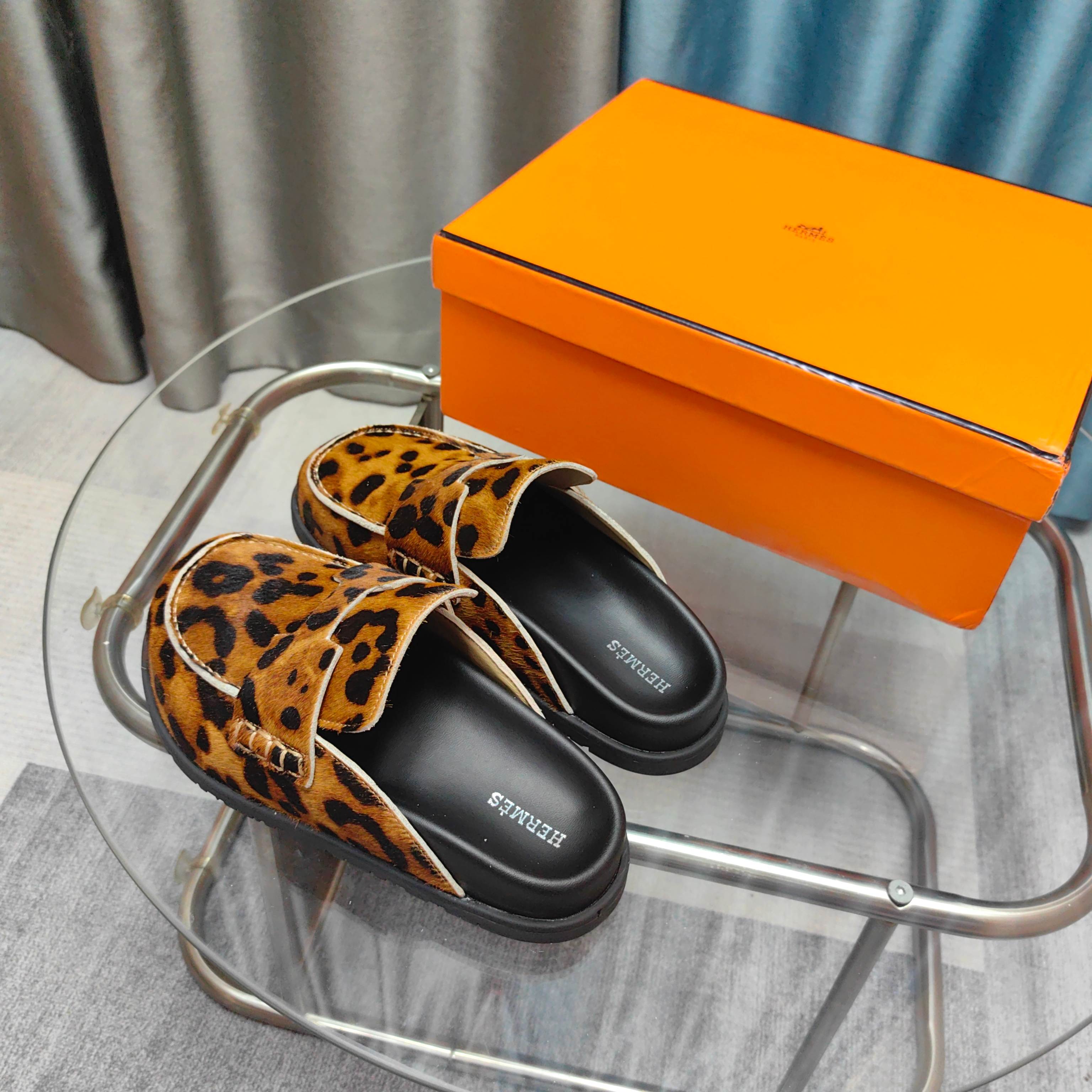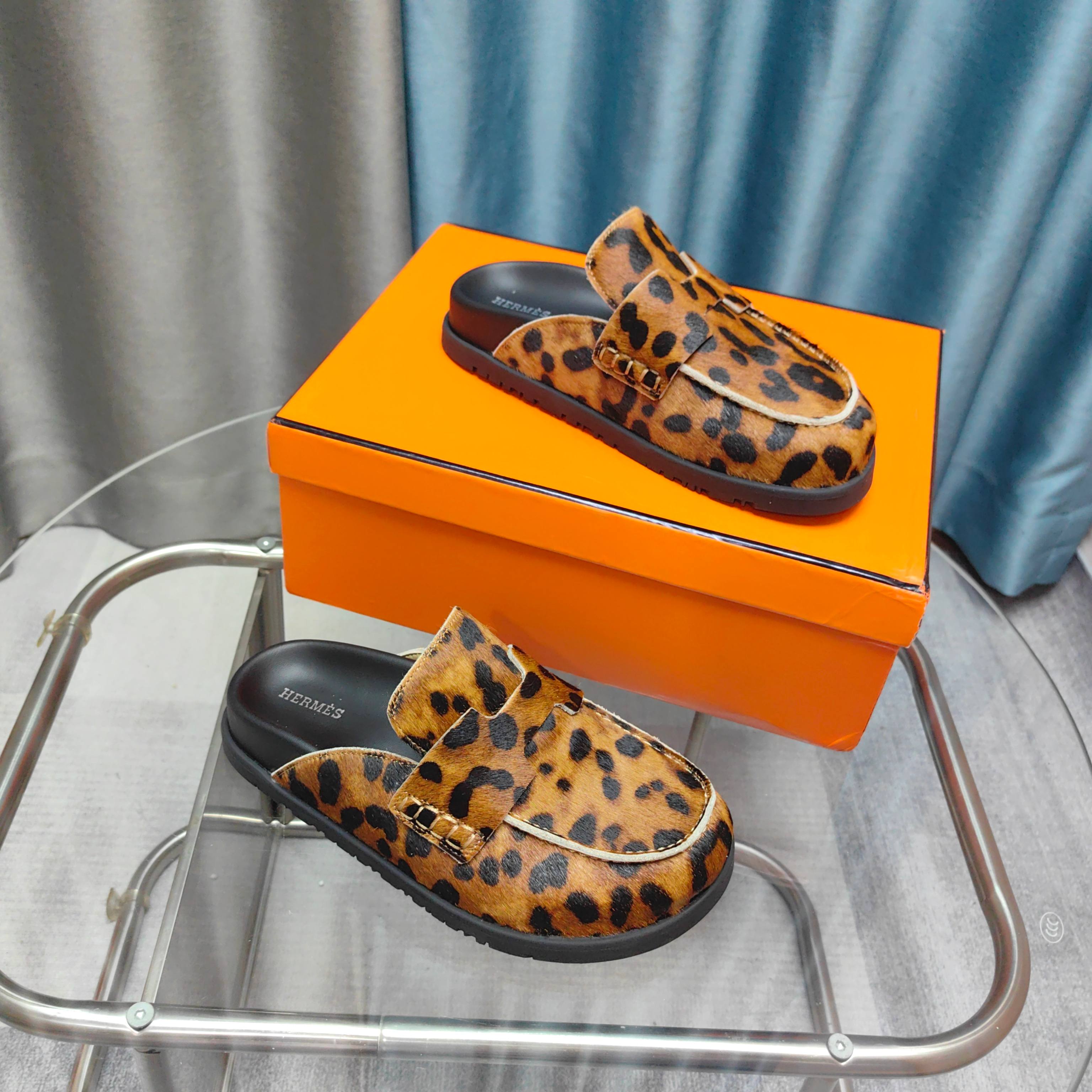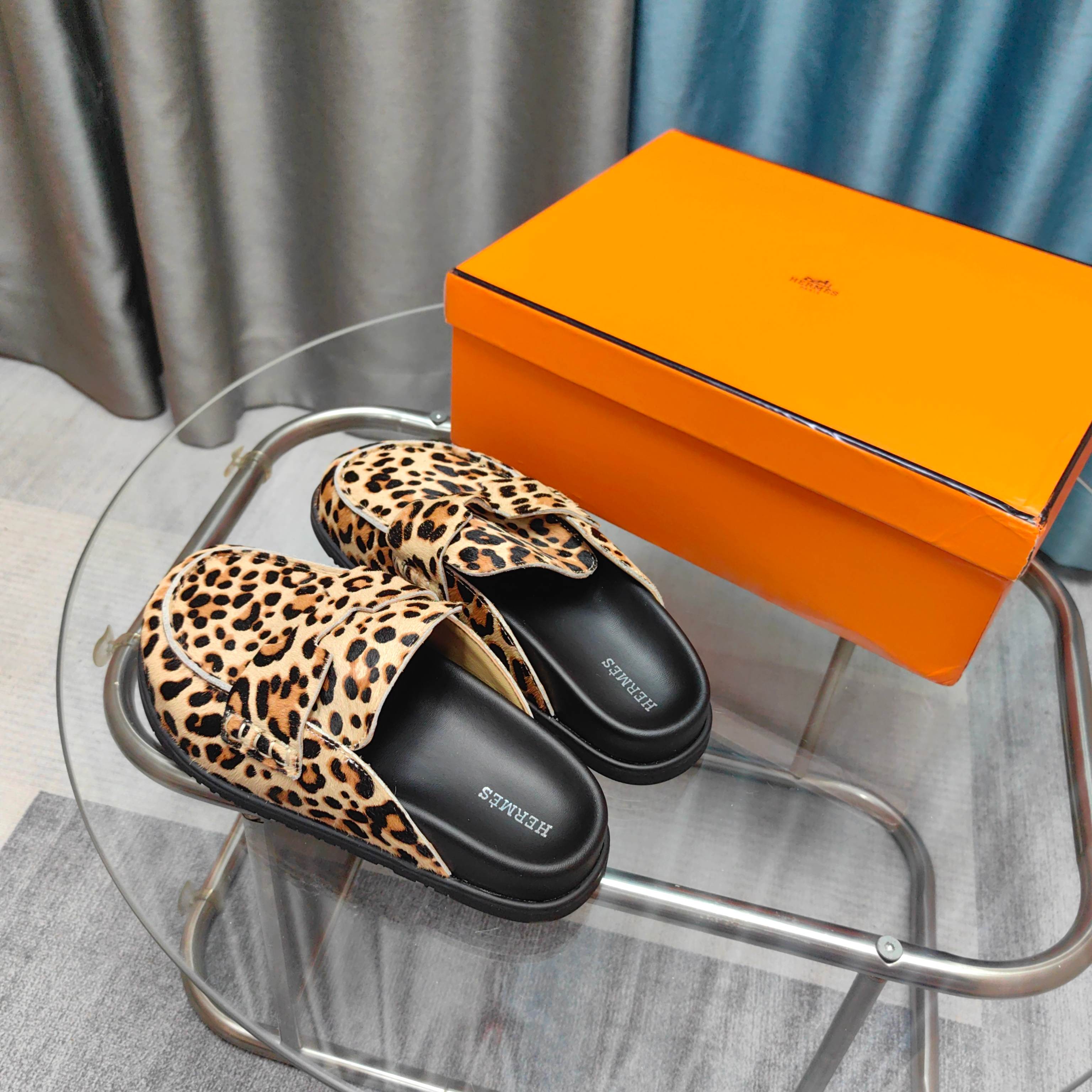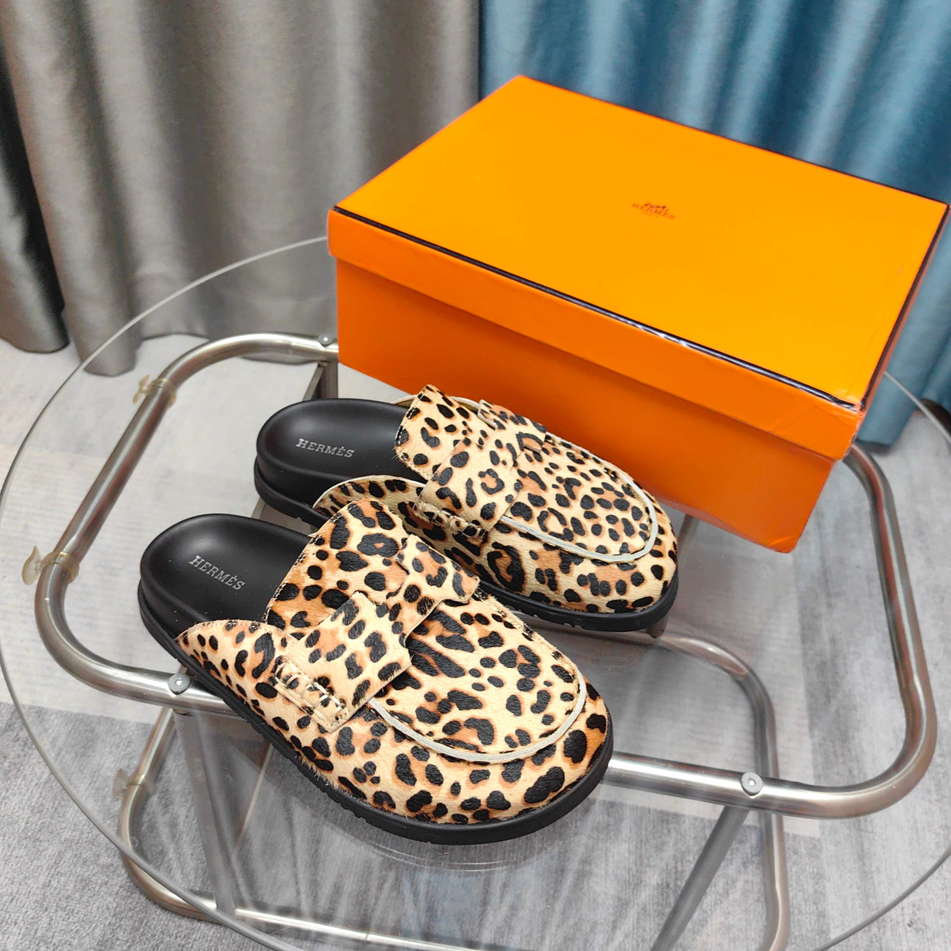HM 25 Go Mule Light Leopark Horsehair Fabric 369355