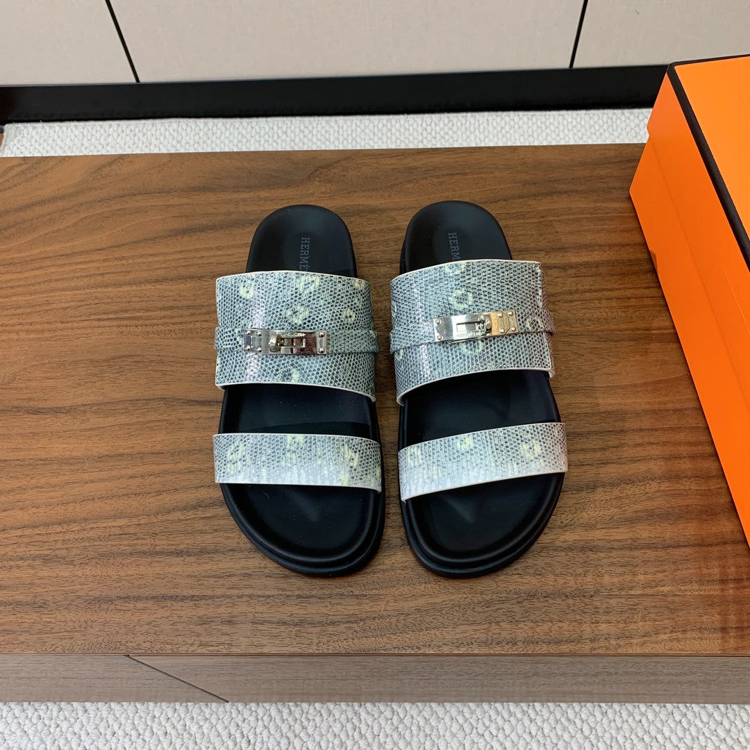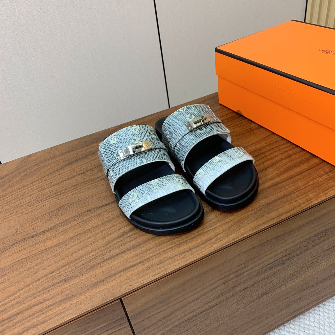 HM Kazimir Sandal Green Gray Farbic Calfskin 293988