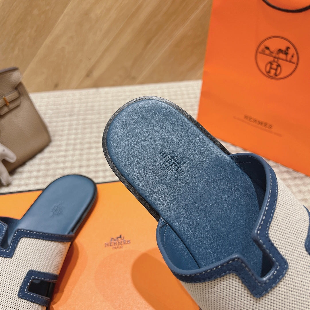 HM Izmir Sandals Blue Fabric Calfskin 294942