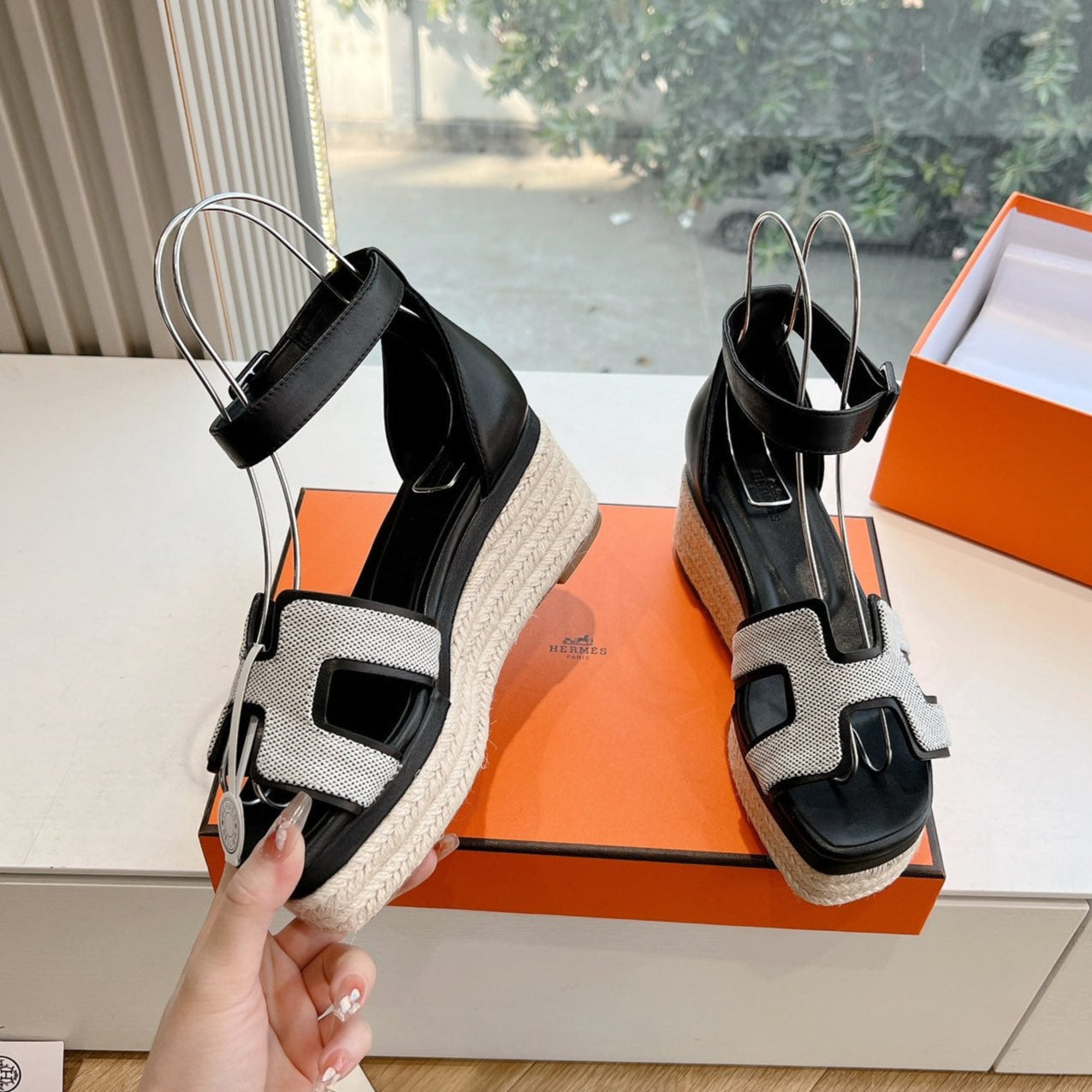 HM 25C Elda espadrille Black Mix White Denim and Goatskin 202832