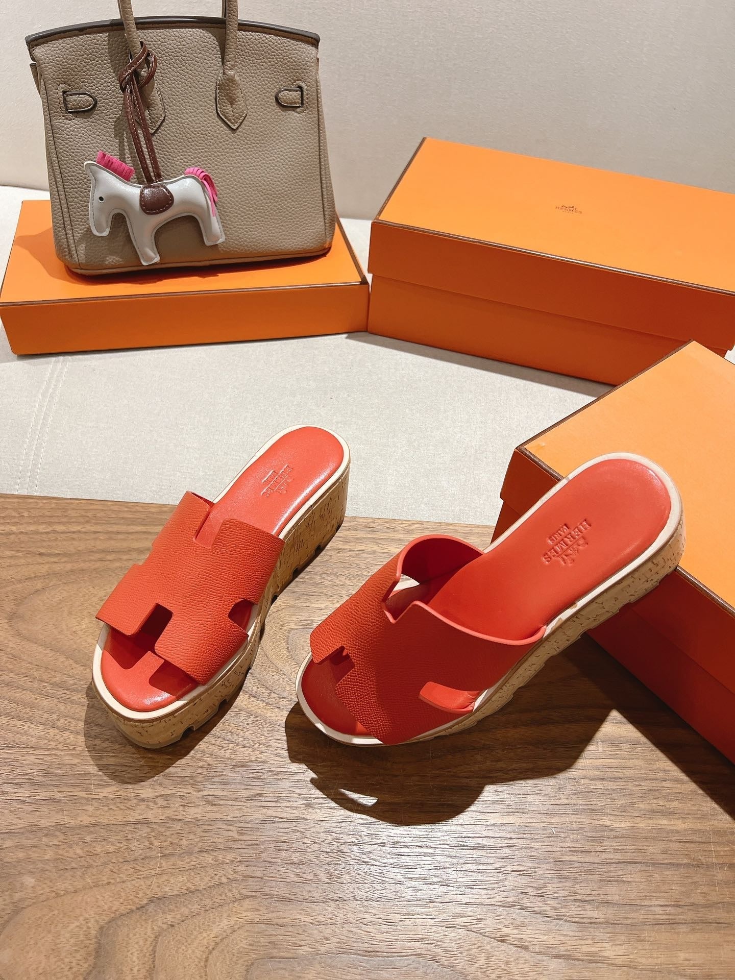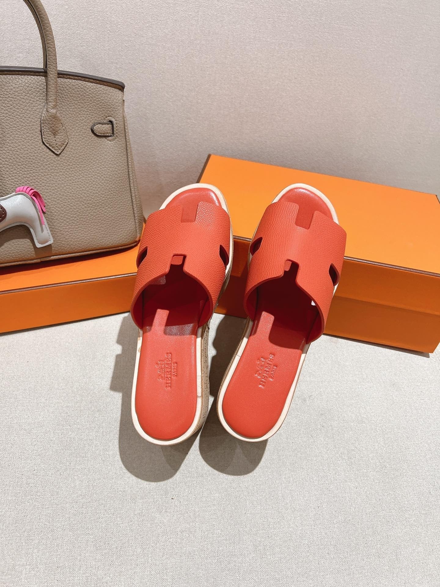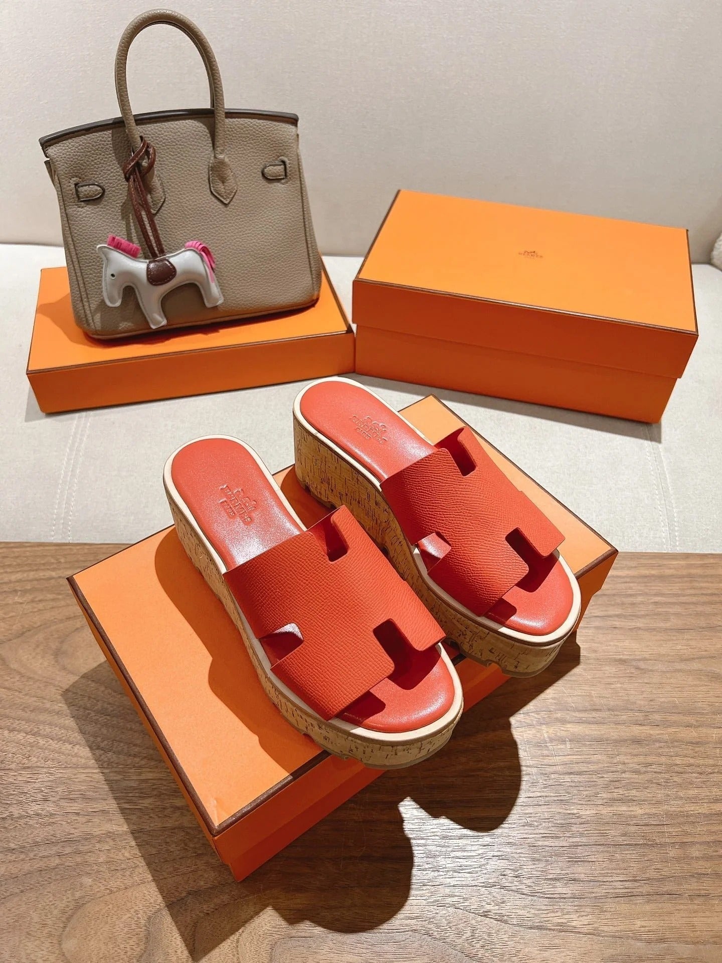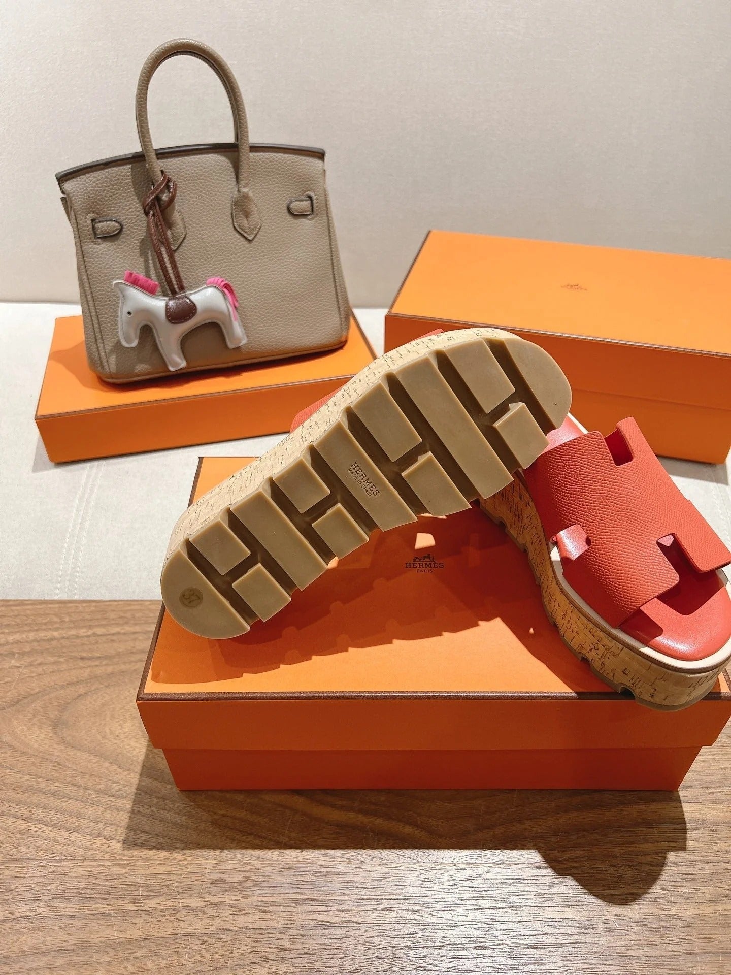 HM 25S HIGH WEDGE SANDALS IN DARK ORANGE LAMBSKIN STYLE 33