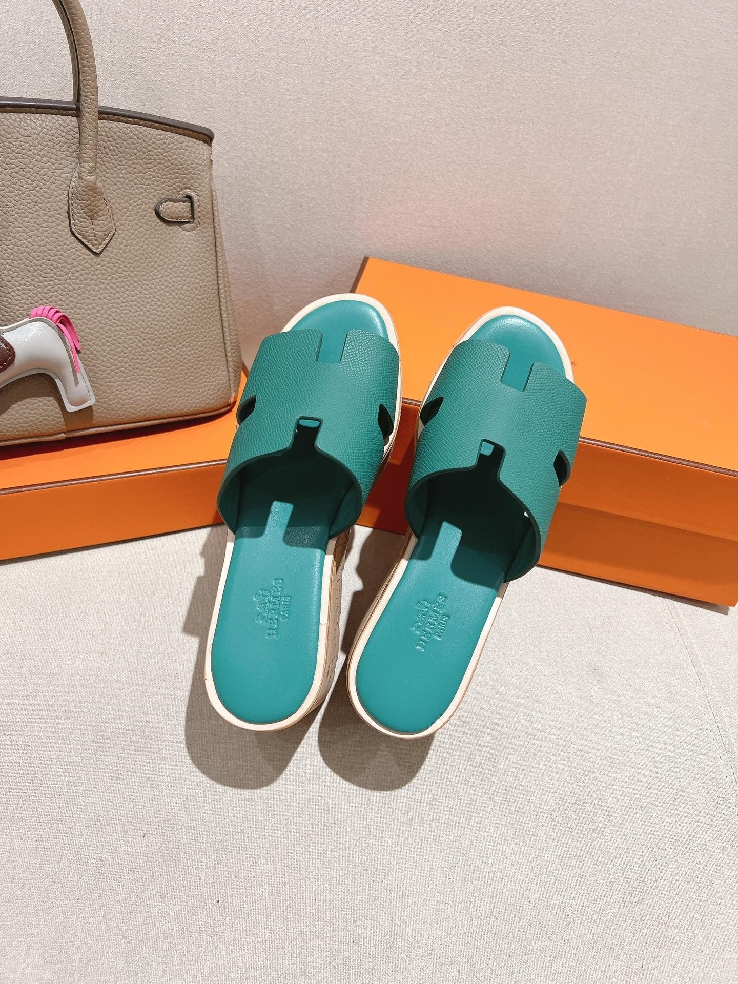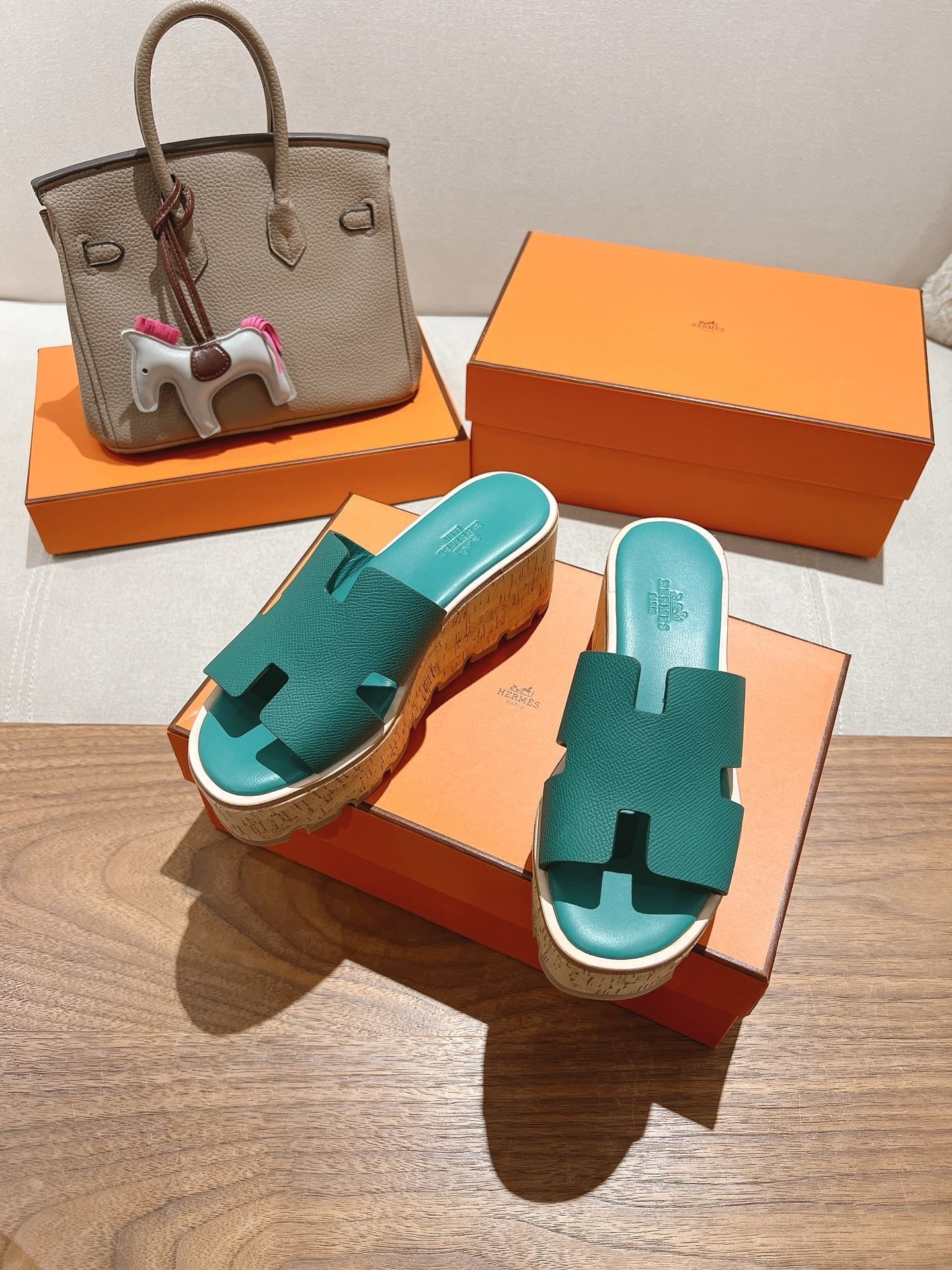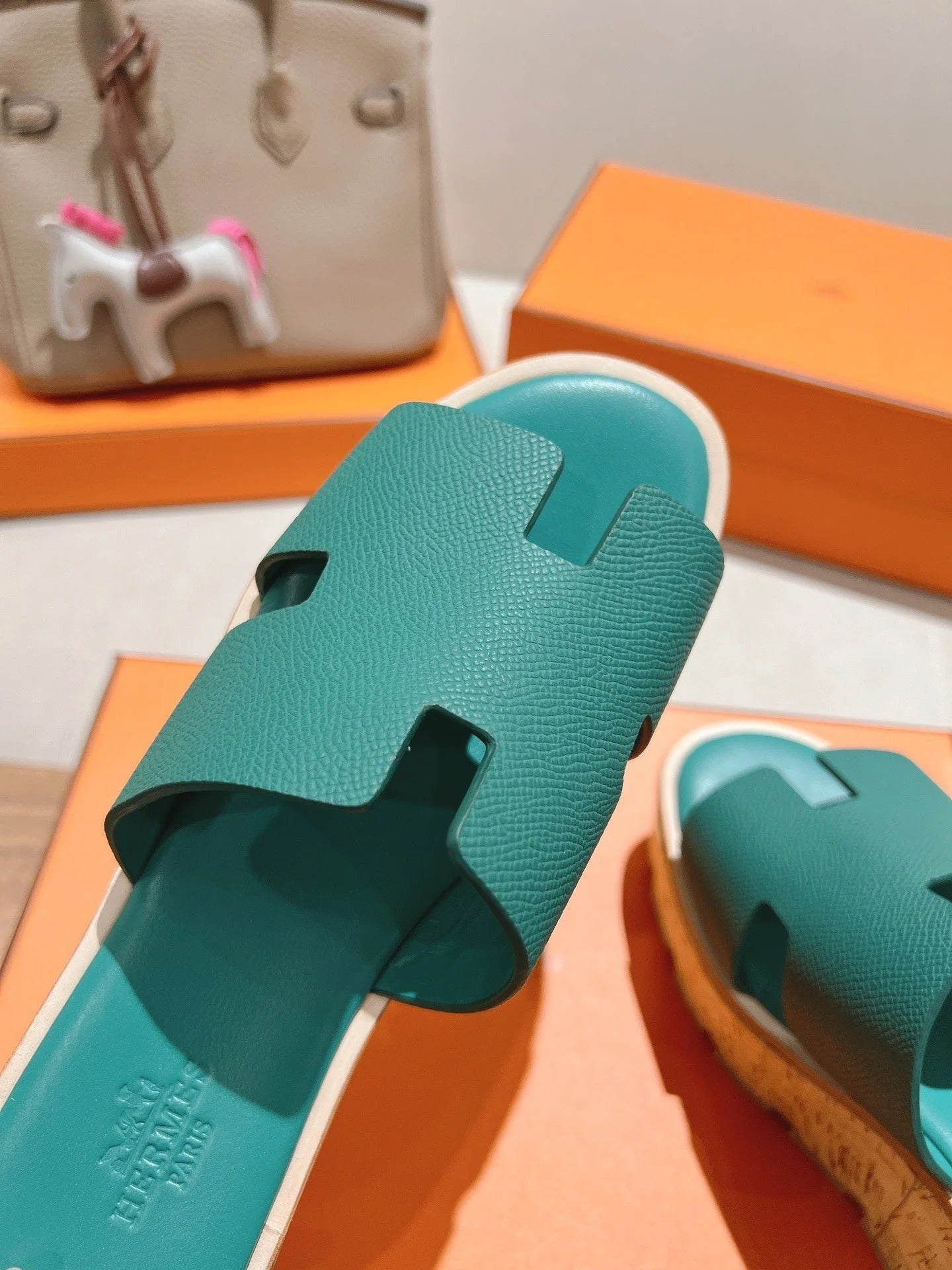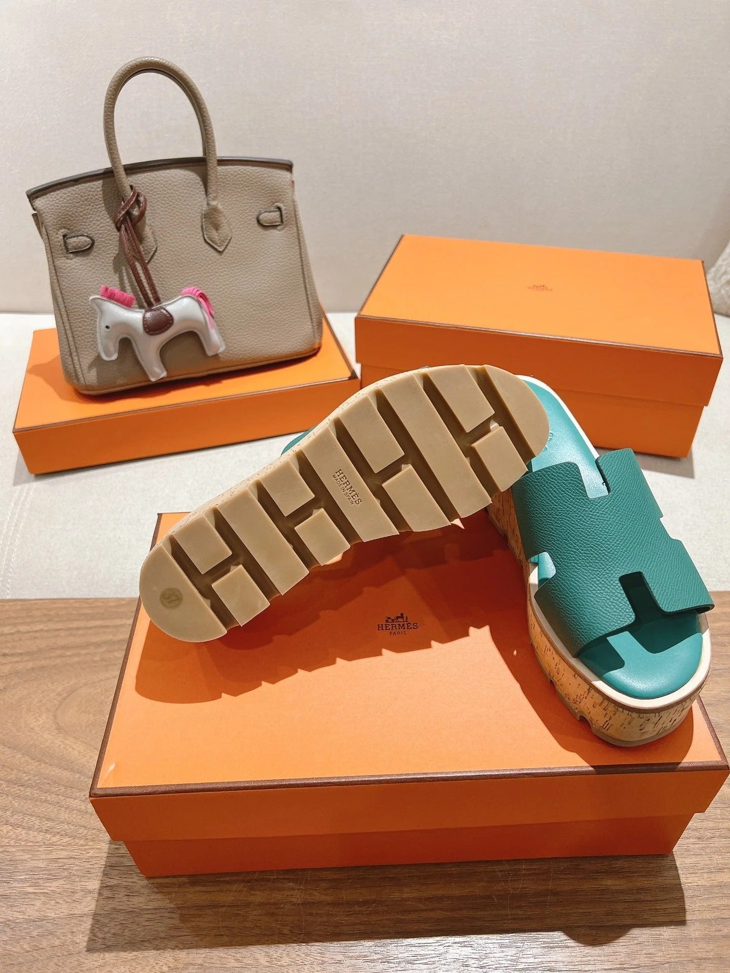 HM 25S HIGH WEDGE SANDALS IN PASTEL SEA GREEN LAMBSKIN STYLE 30