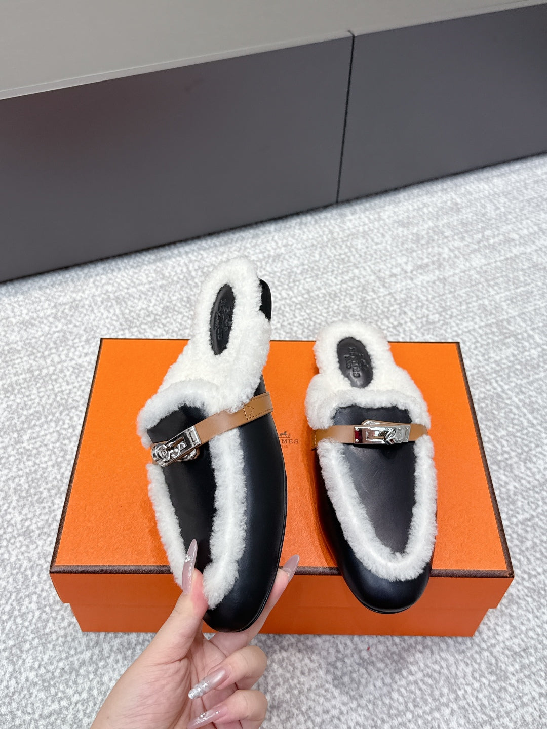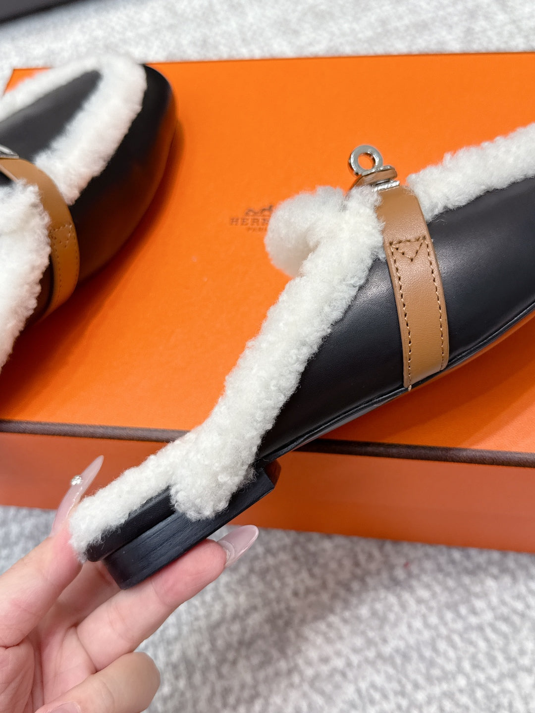 HM 25ss Oz Mule Black Goatskin And Shearling 461941