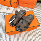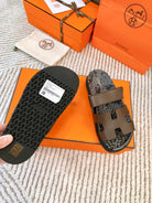HM Chypre Sandal Earth Brown With Black Gray Pattern Cowhide 963203