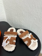 HM Chypre Sandal In Caramel Mix White Suede And Fleece Lining 961140