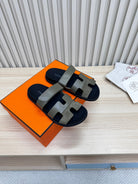 HM Chypre Sandal In Grey Green Cowhide And Suede 968868