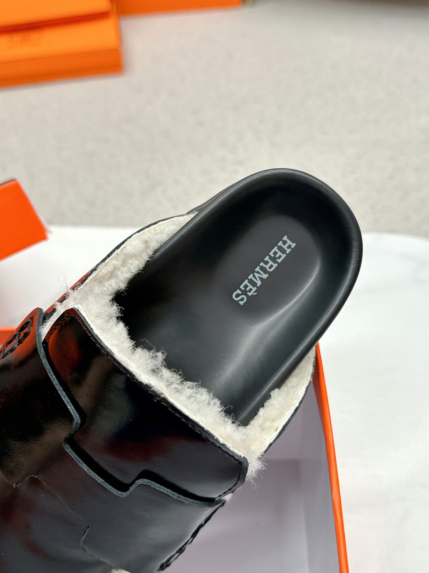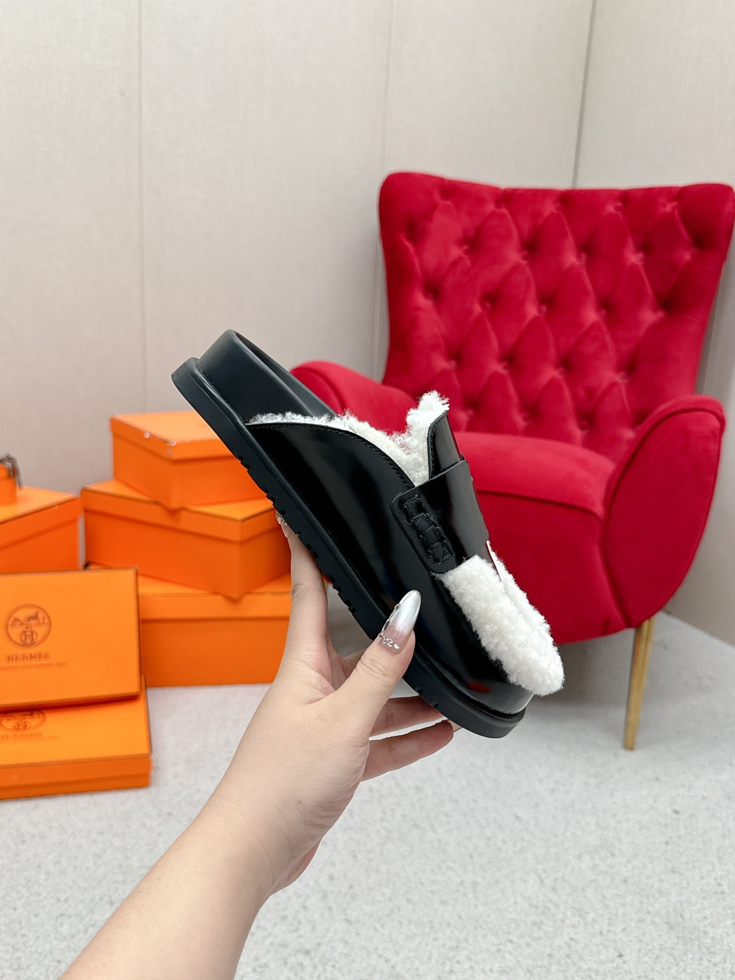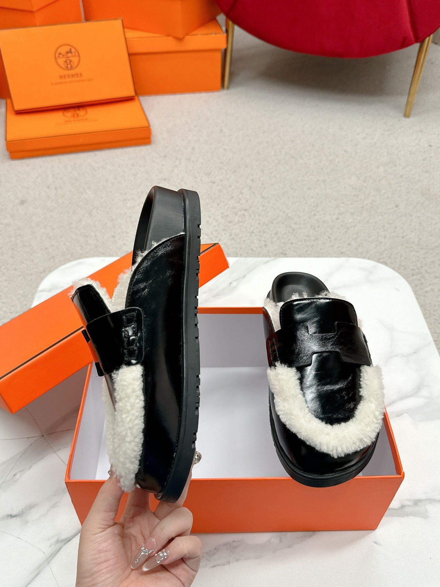 HM Go Mule Black White Cowhide Lined With Wool Fleece 476589