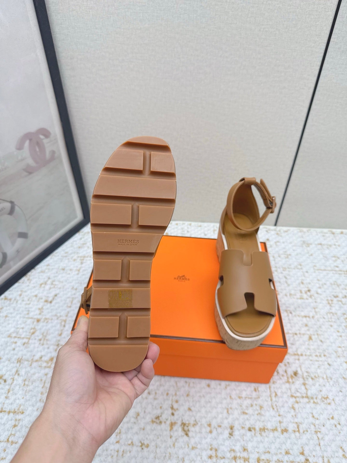 HM Luce 30 Sandal 65mm Brown Cowhide Cork 477969