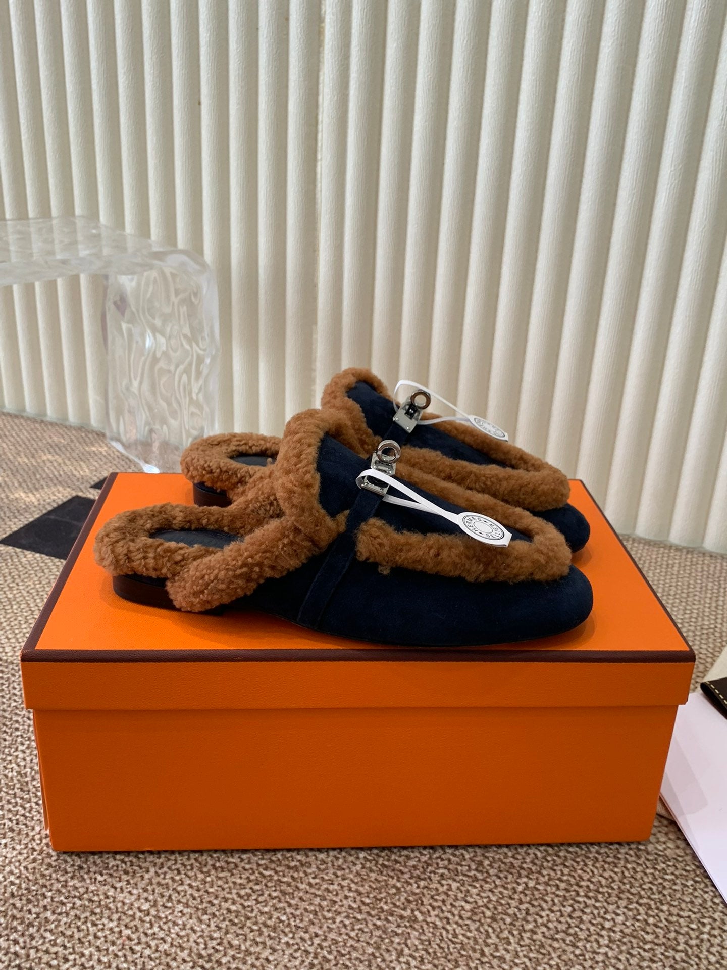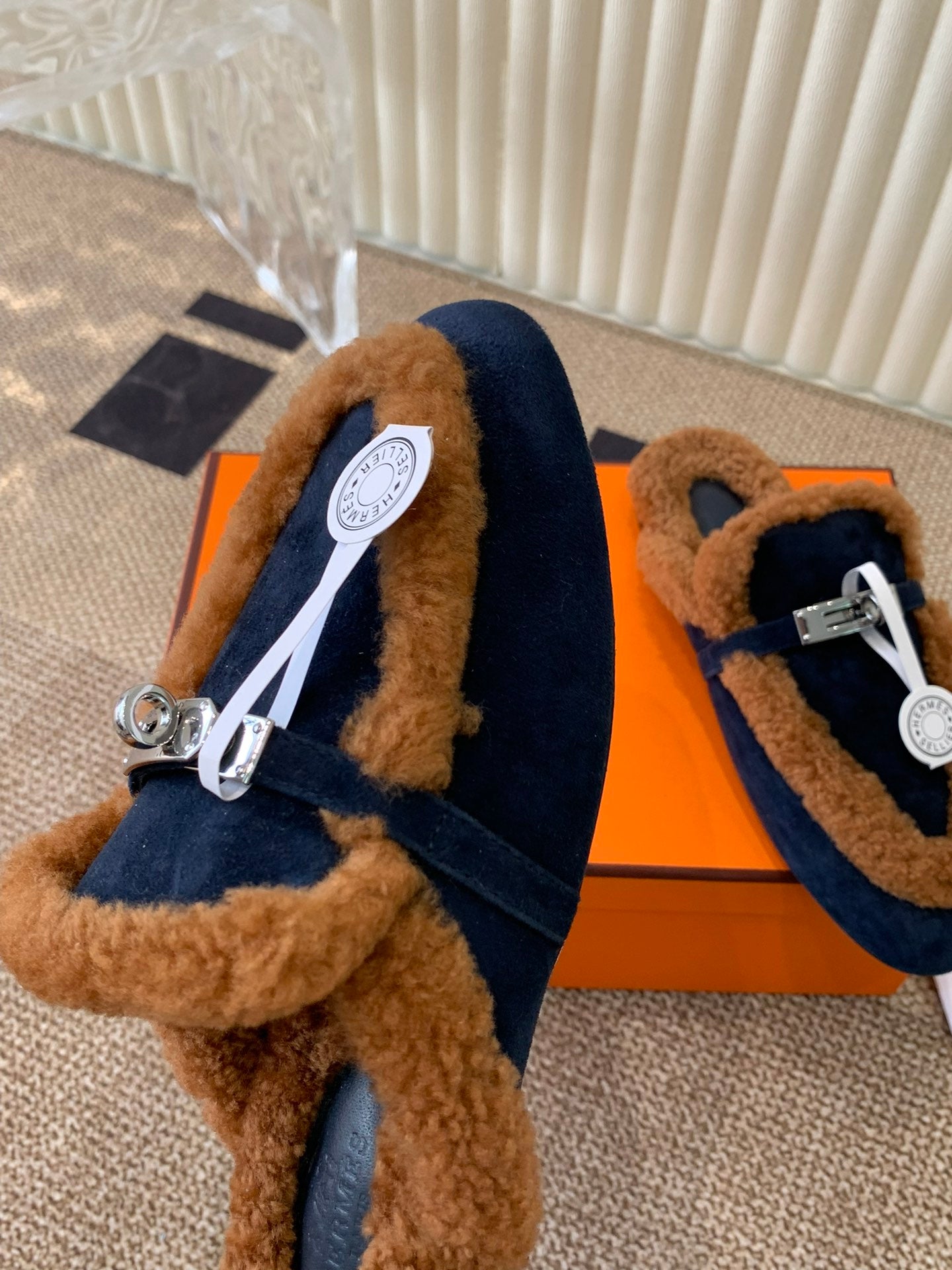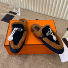 HM Oz Mule In Black Suede Lined With Wool Fleece 113195