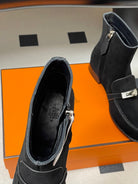 HM Short Boots 25mm Kelly Buckle Black Suede