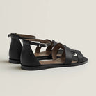 Material: Sandal in calfskin with straight cut edges, "H" cut-out detail and thin ankle strap.