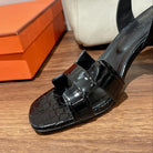 SLINGBACK ETERNITE 105 BLACK LAMBSKIN AND CROCODILE LEATHER