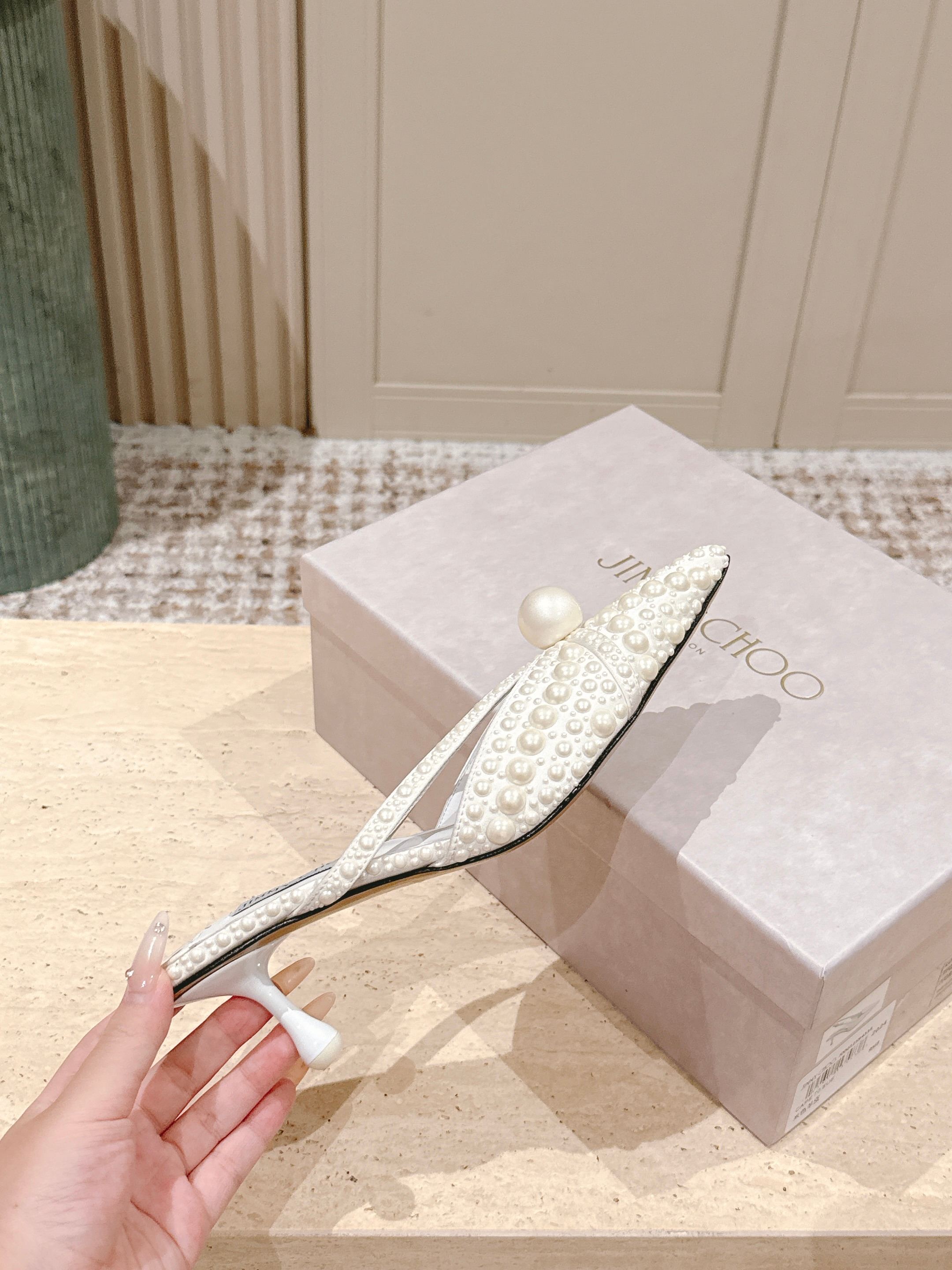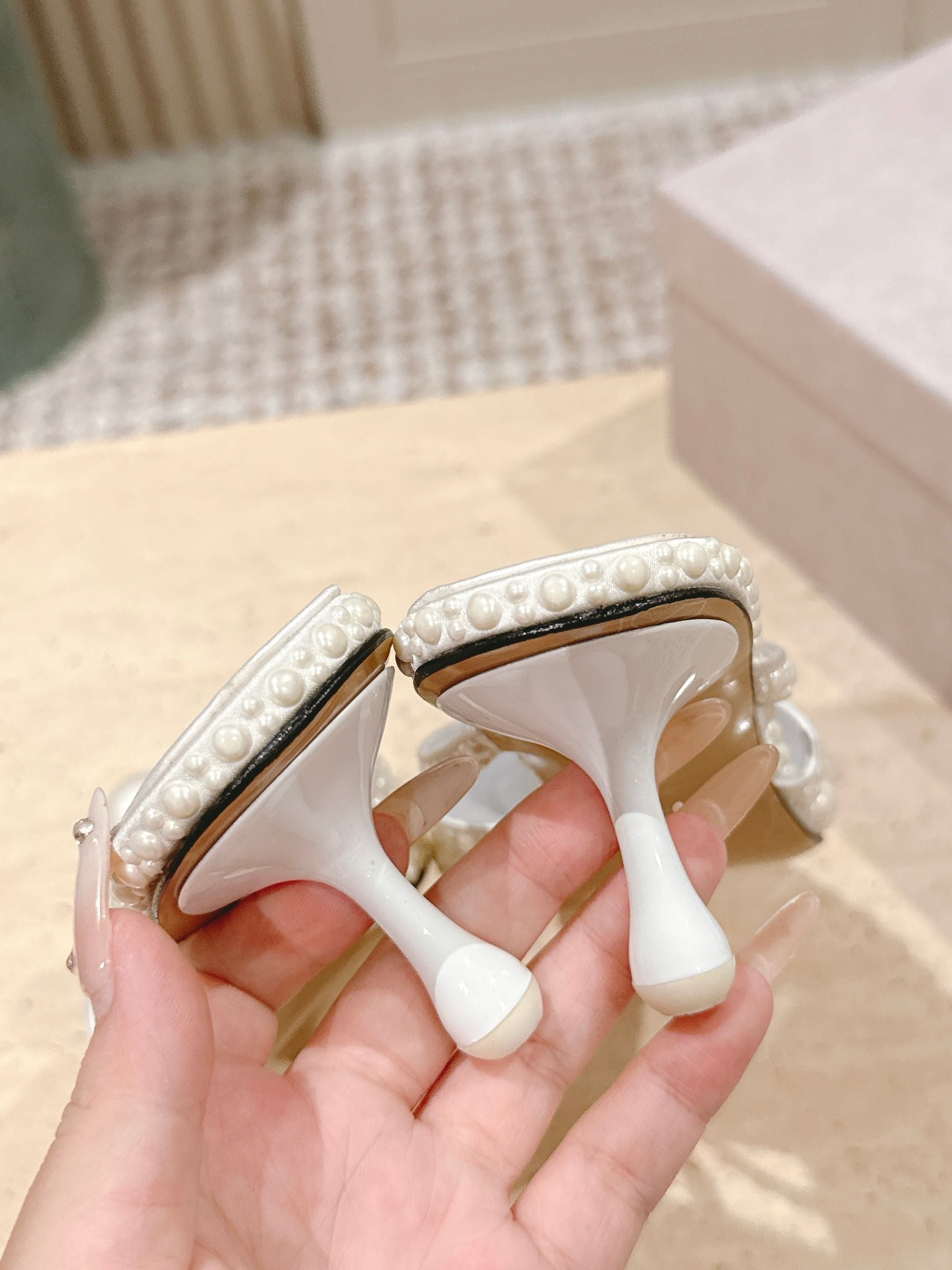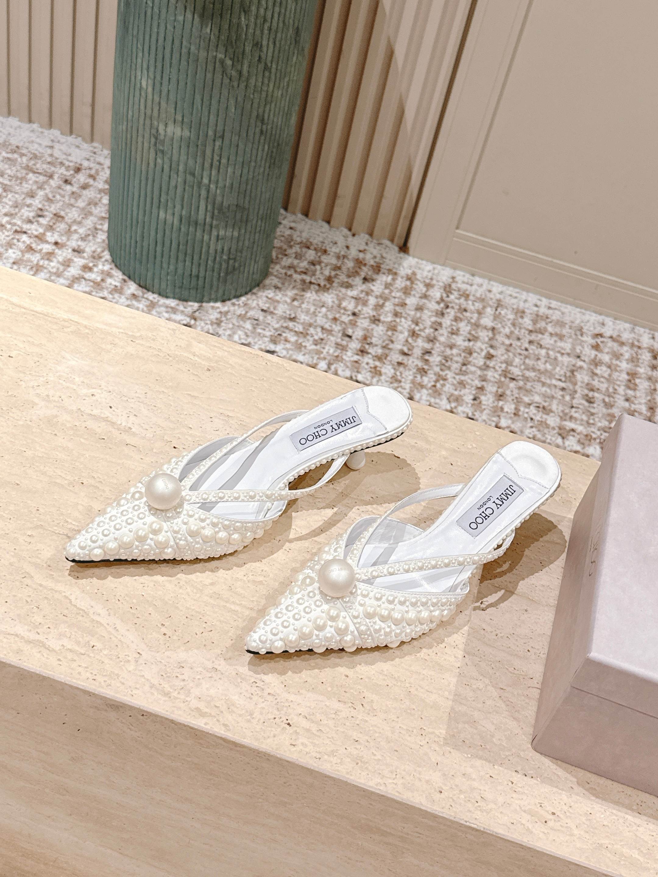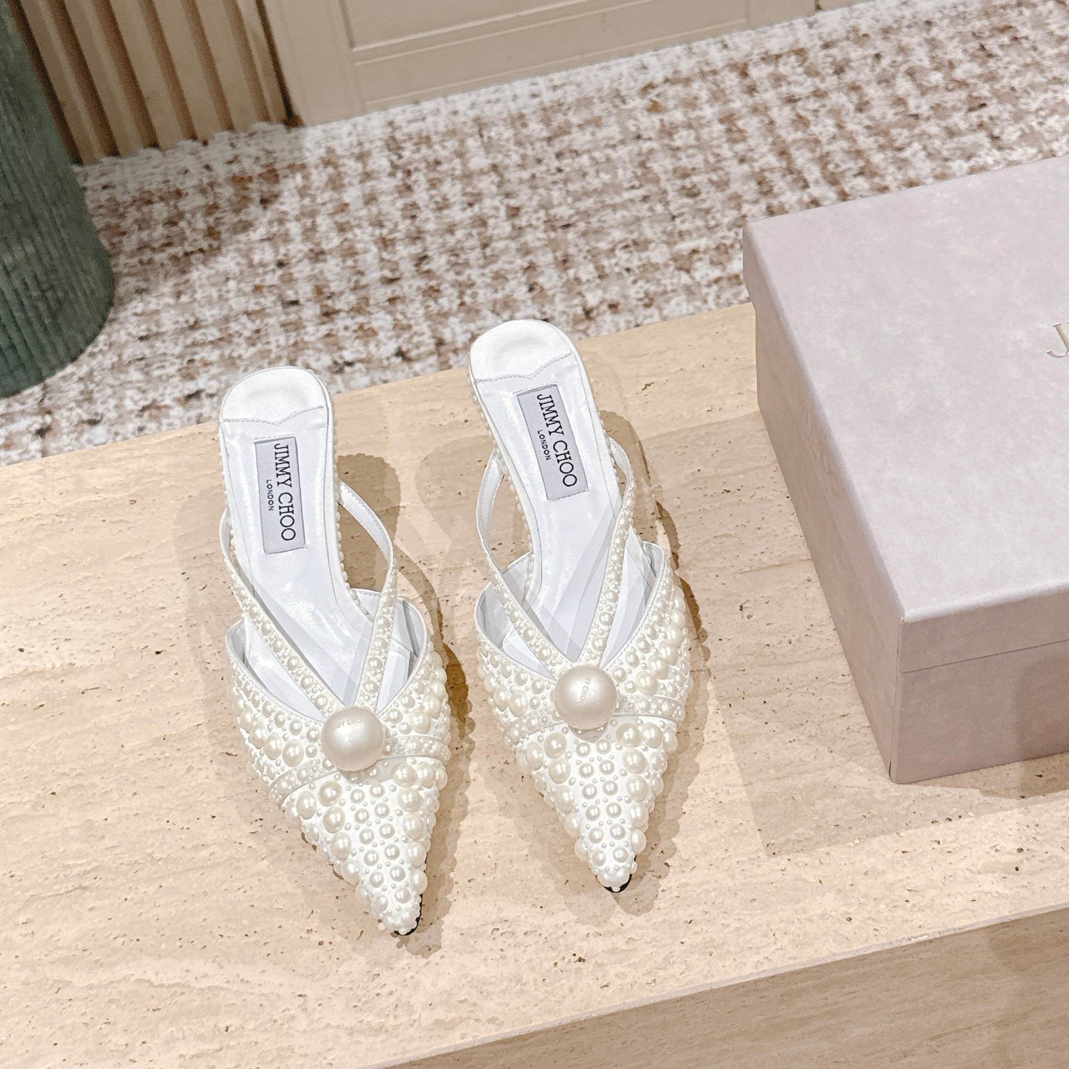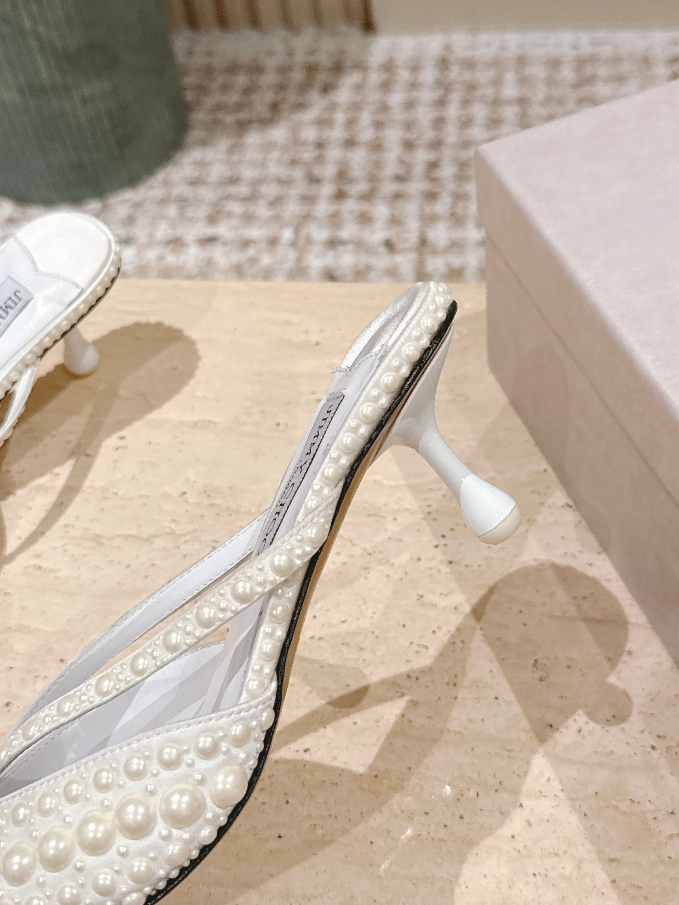 Jimmy All-Over Pearls Sana Mule 50mm White Satin Fabric 431840