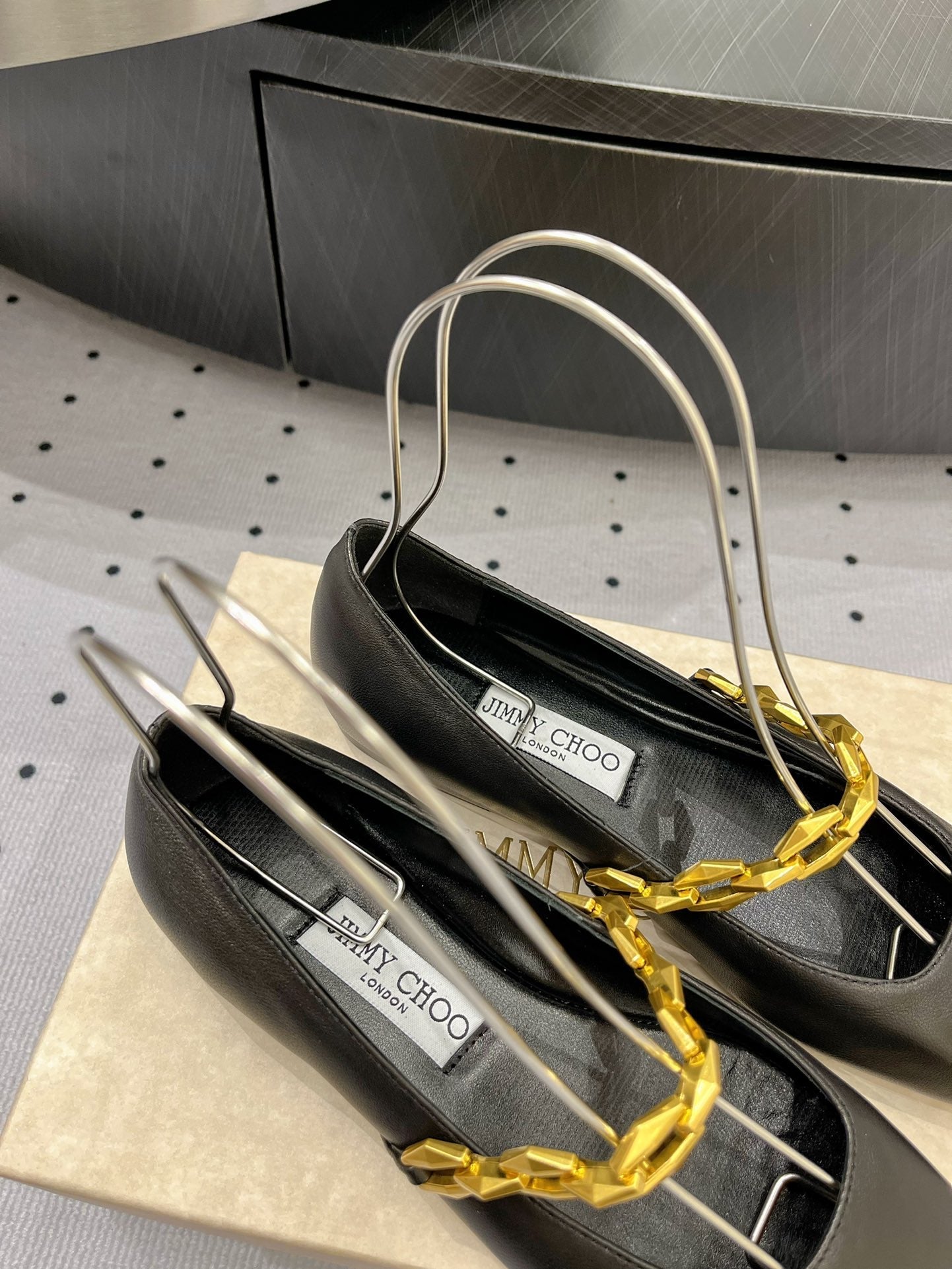 Jimmy Diamond Tilda Flat 10mm In Black Nappa Leather Flats With Chain 591607
