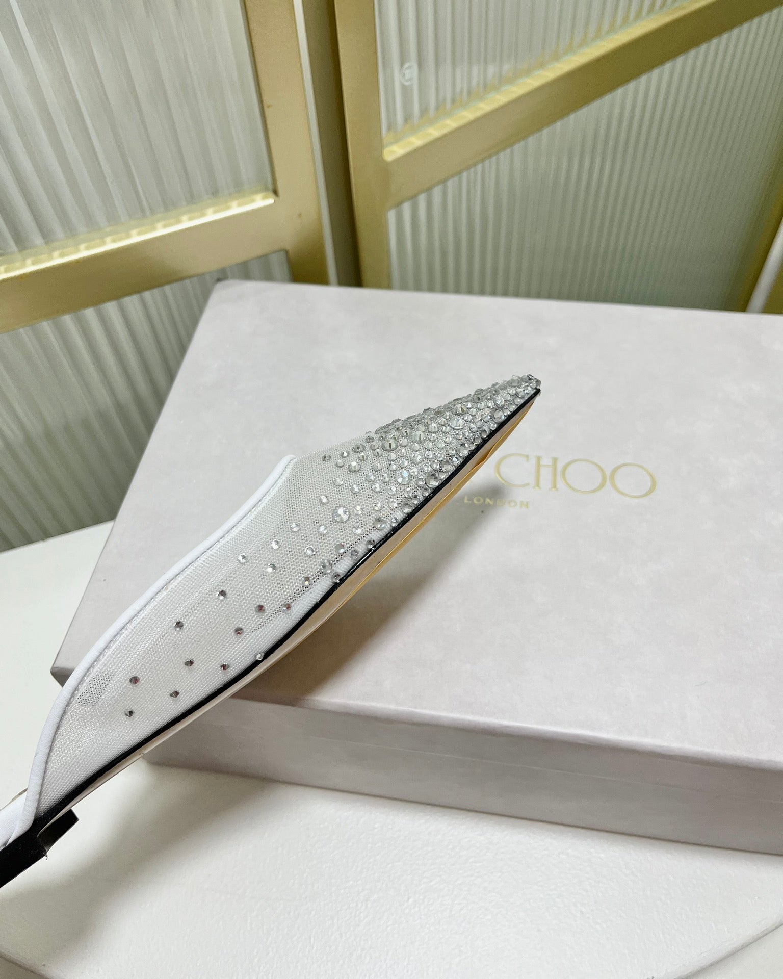 Jimmy Mule In White Mesh Fabric With Swarovski Crystal 597884