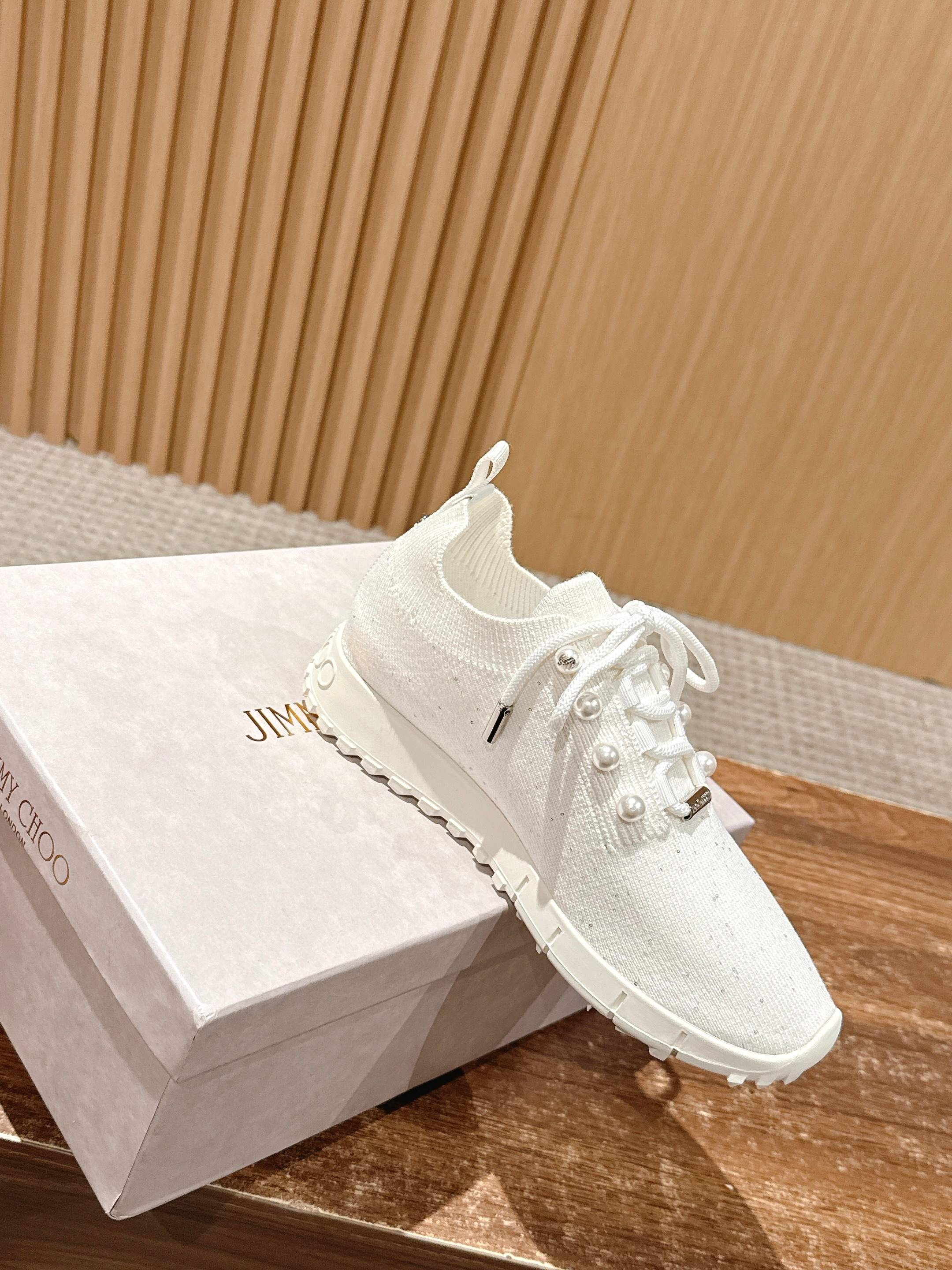 Jimmy Pave - Embellished Sneakers White Sequined Knit 400163