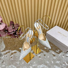 Jimmy Saeda 100mm In White Silver Satin Pumps With Crystal Embellishment 641056