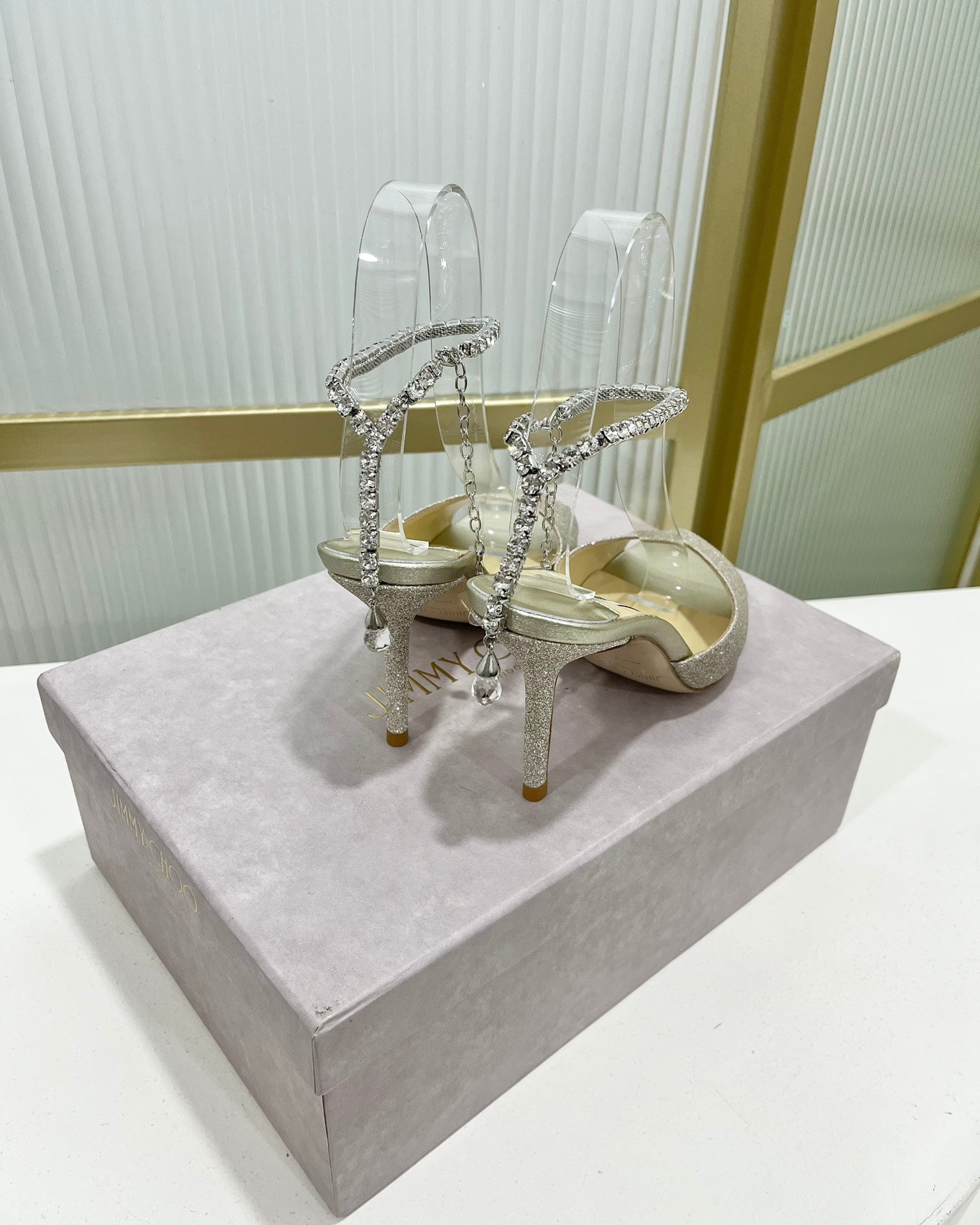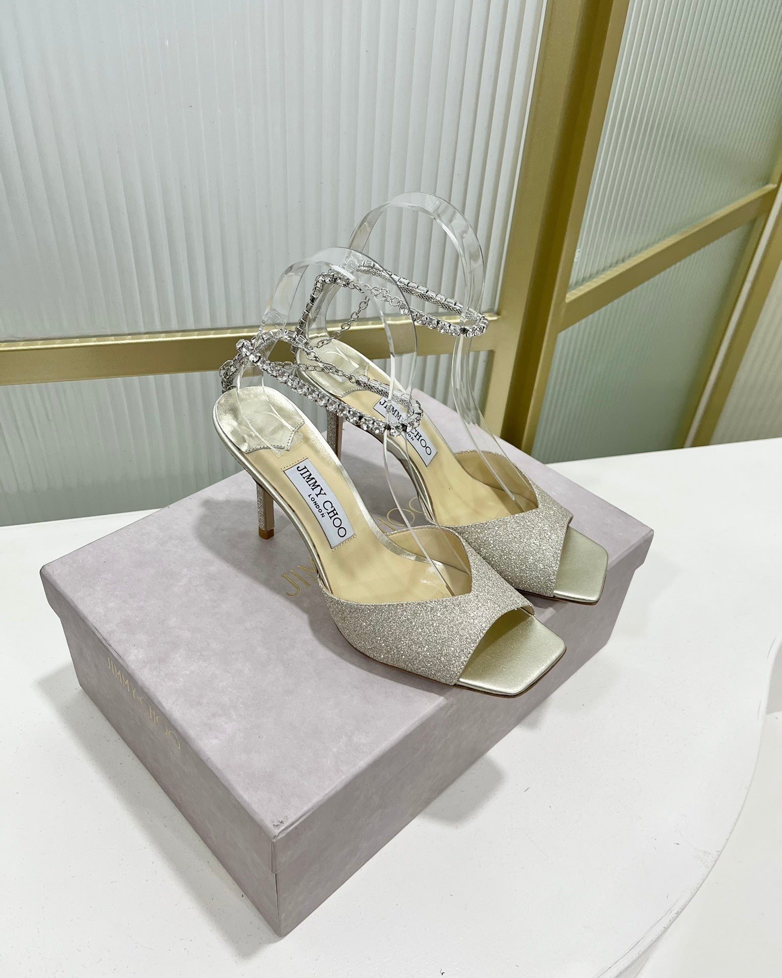 Jimmy Saeda Sandal 85 In Silver Satin With Glitt 587738