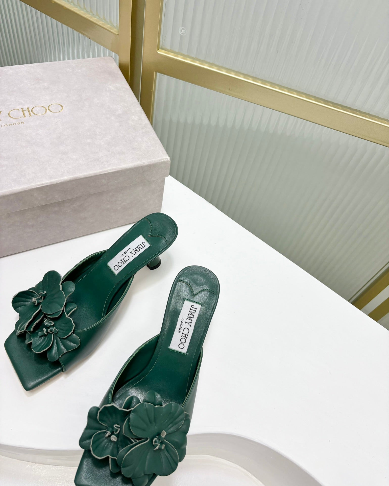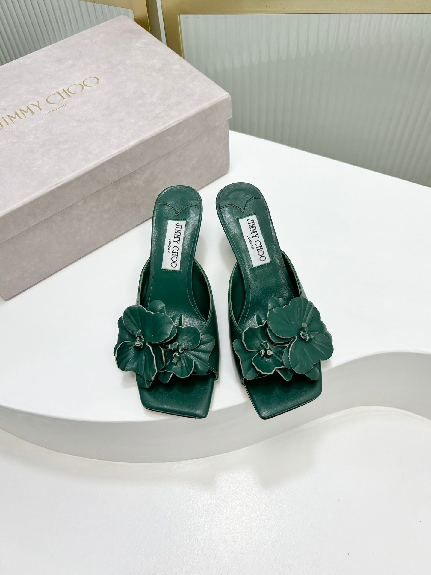 Jimmy Skye 65mm In Dark Green Cowhide Mules 597850