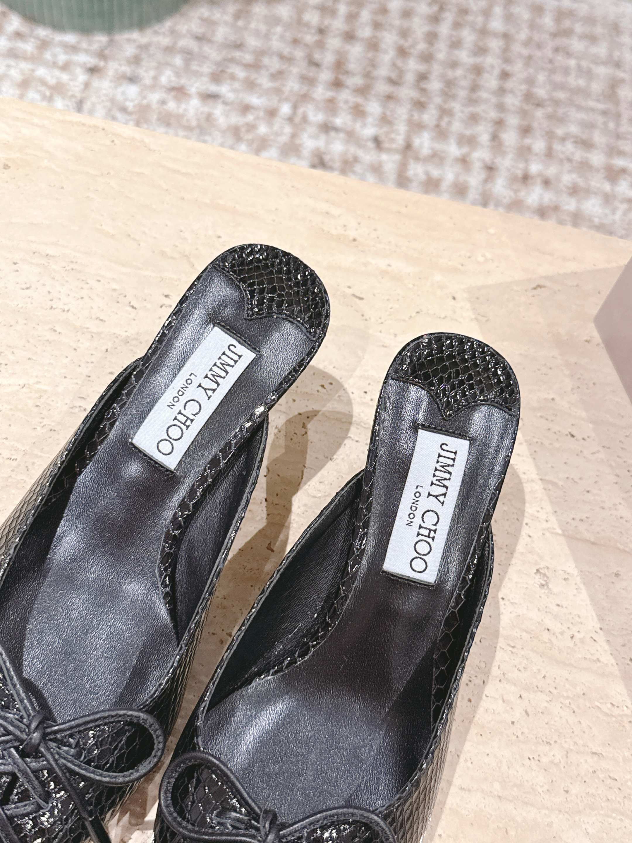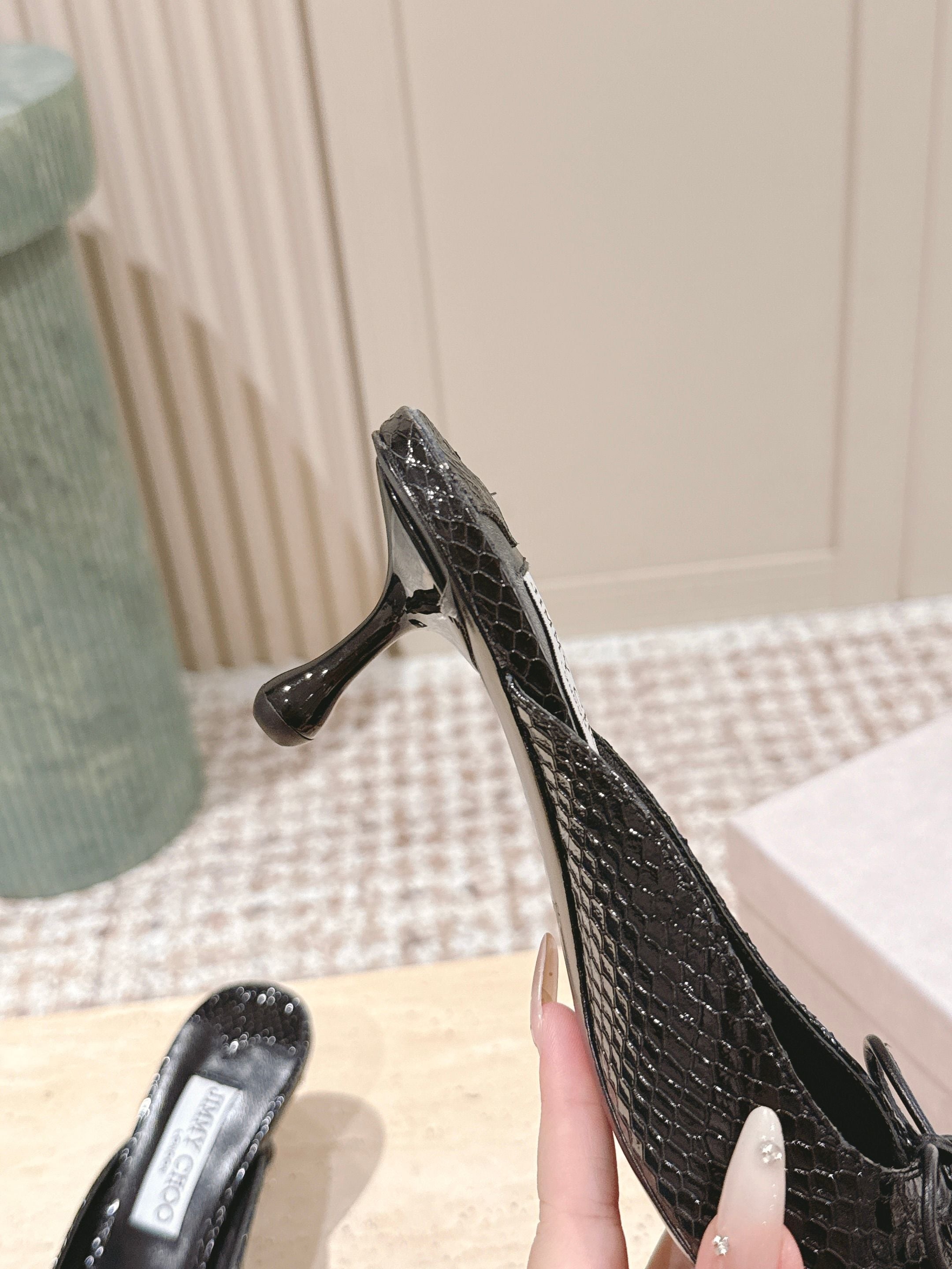 Jimmy Snake Embossed Scarlett Mule 50mm Black Cowhide 431846