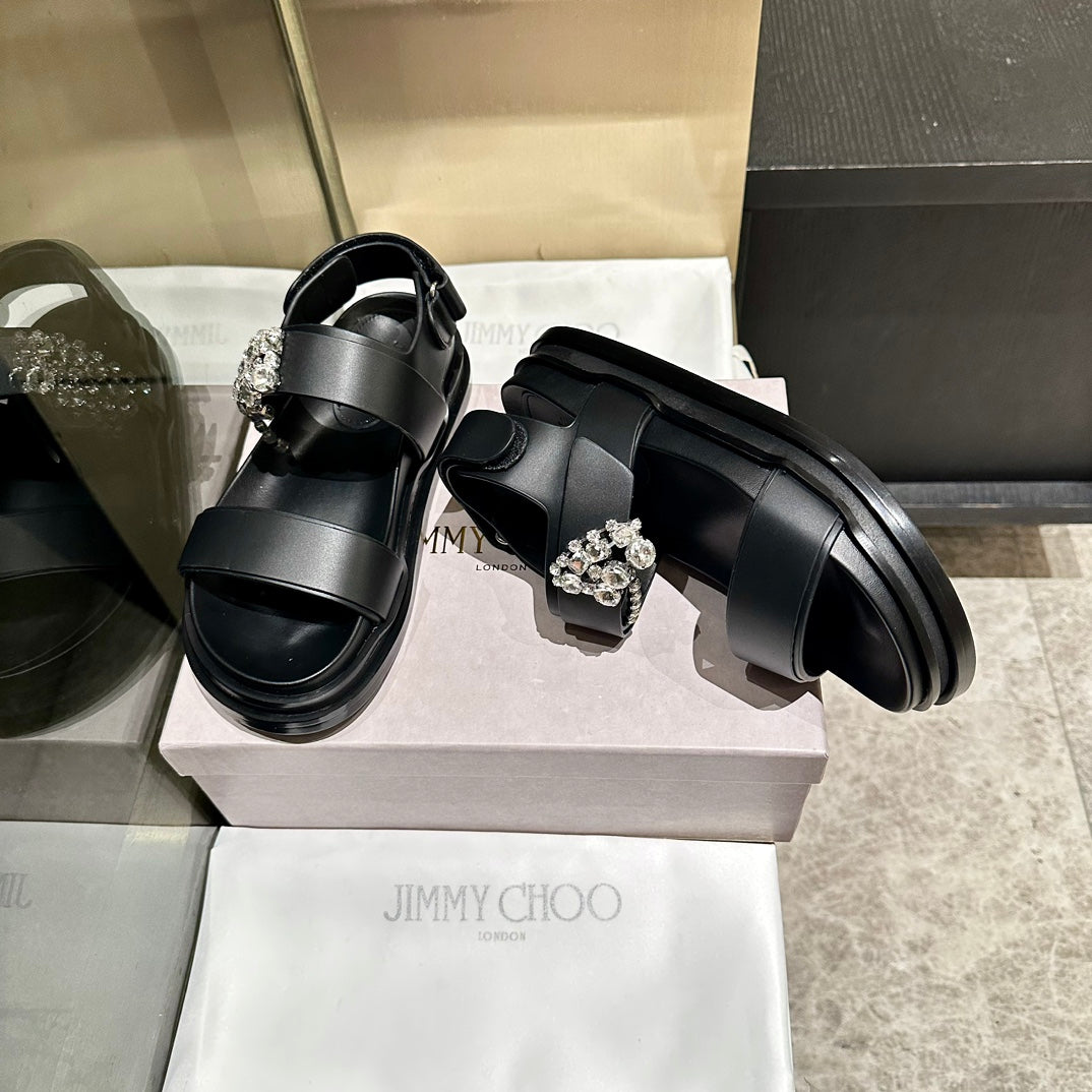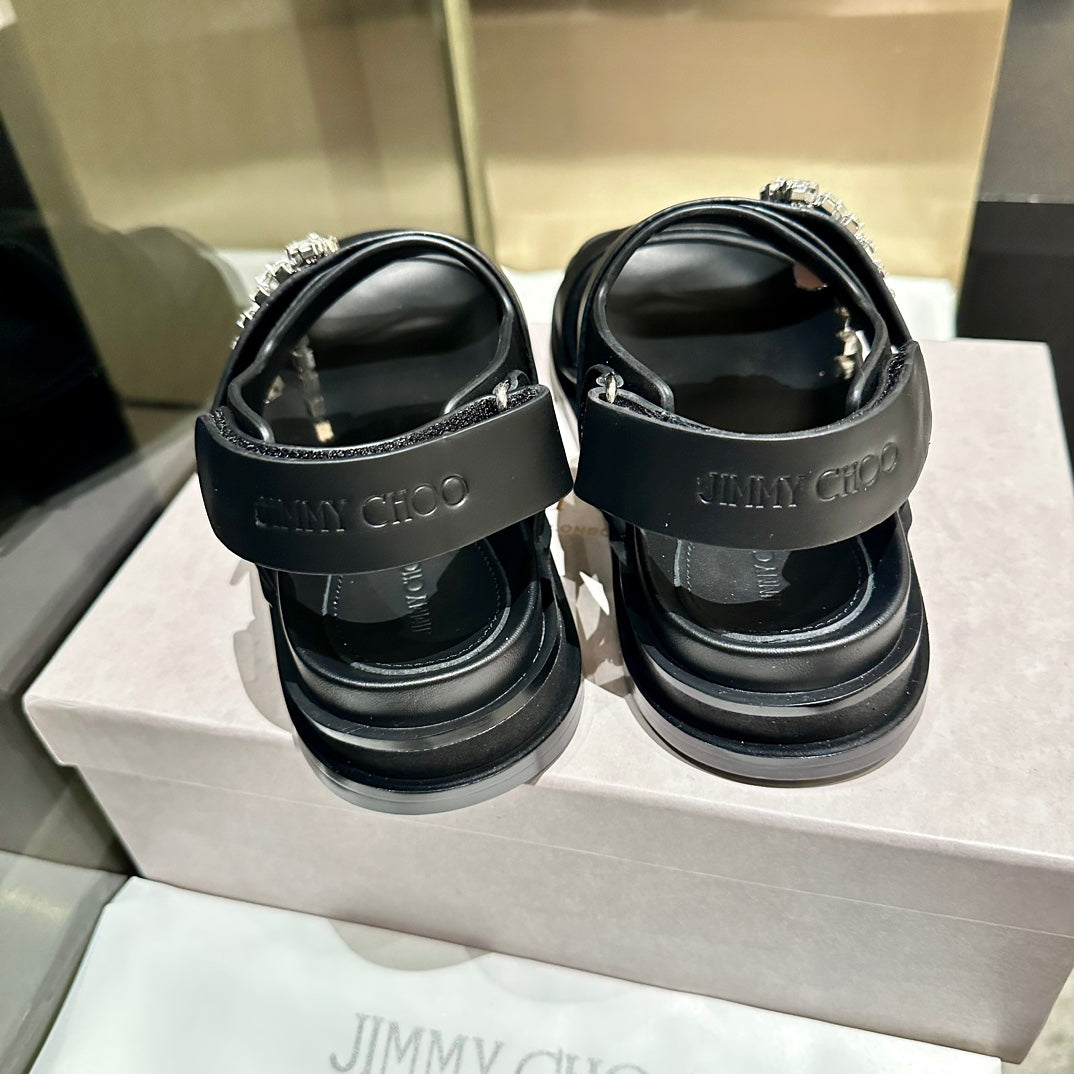 Jimmy Rhinestone Verity Sandals Black Leather 326426