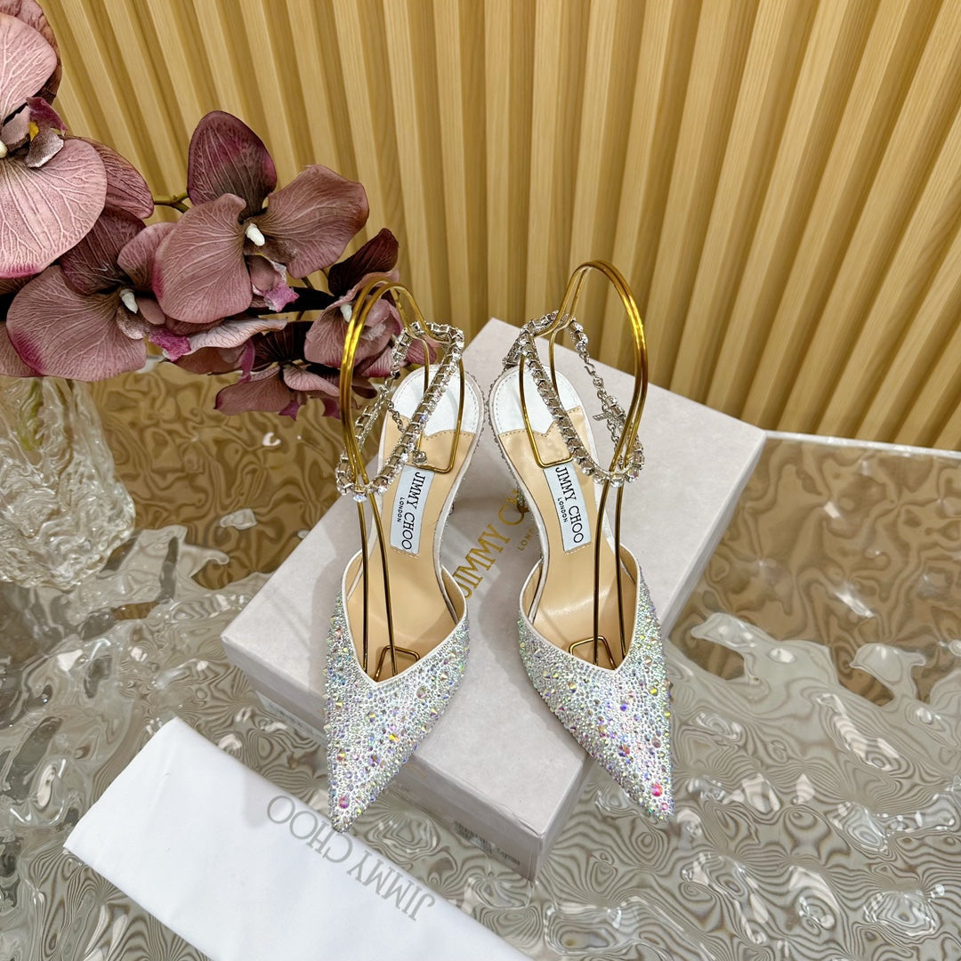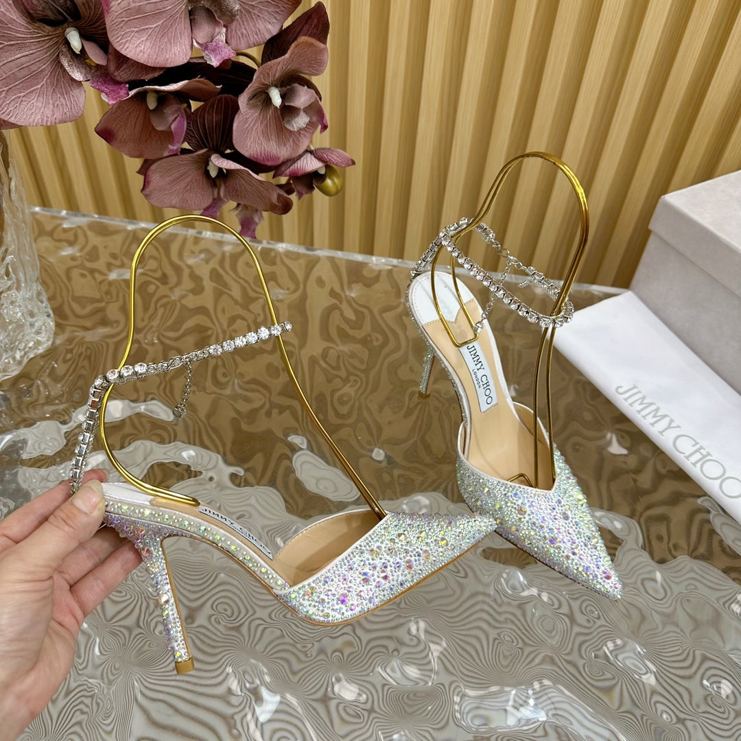 Jimmy Rhinestone Verity Sandals White Leather 326425