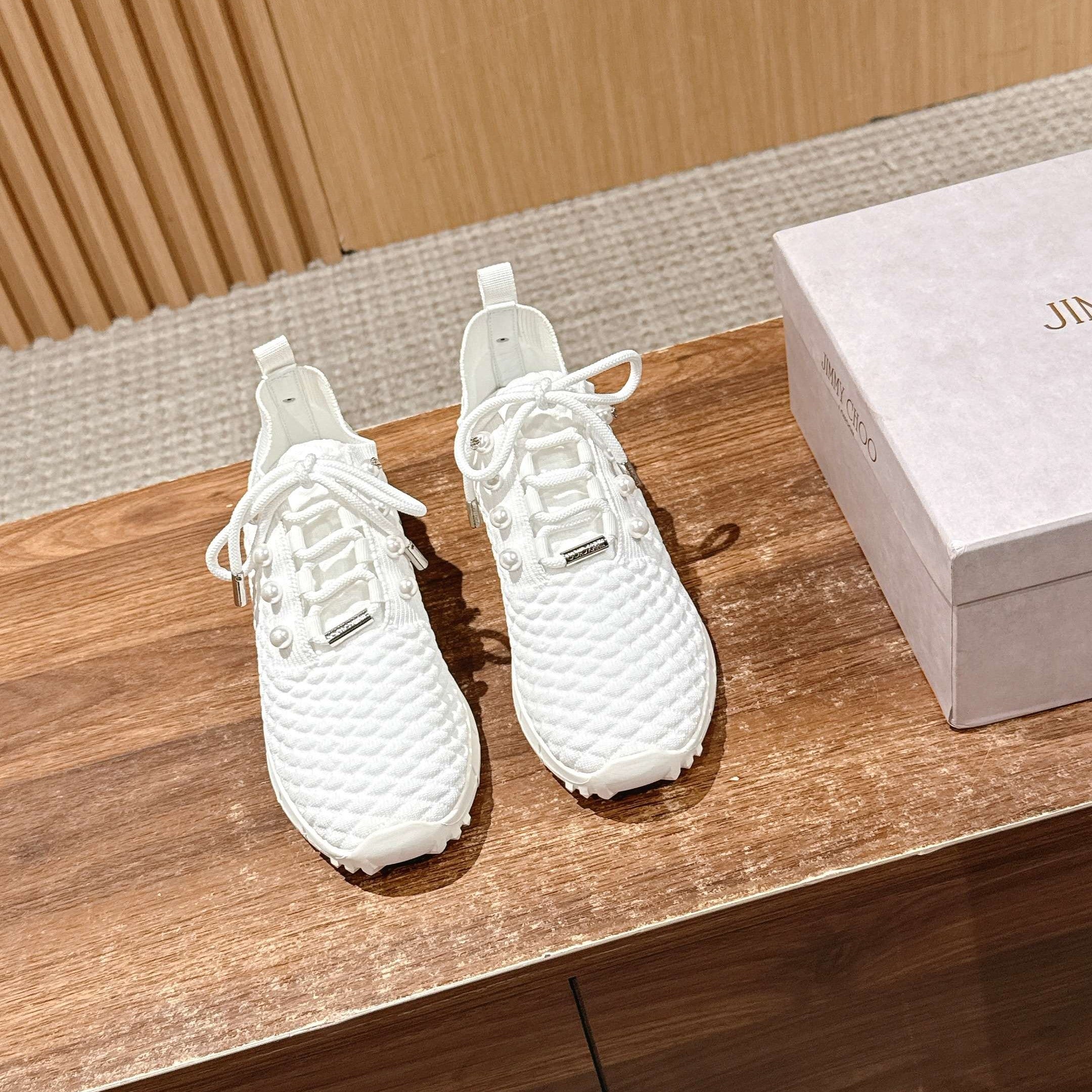 Jimmy Pearl - Embellished Sneakers White Textured Knit 400160