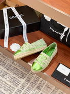 cc espadrilles beige green woolen cloth green metalic lambskin
