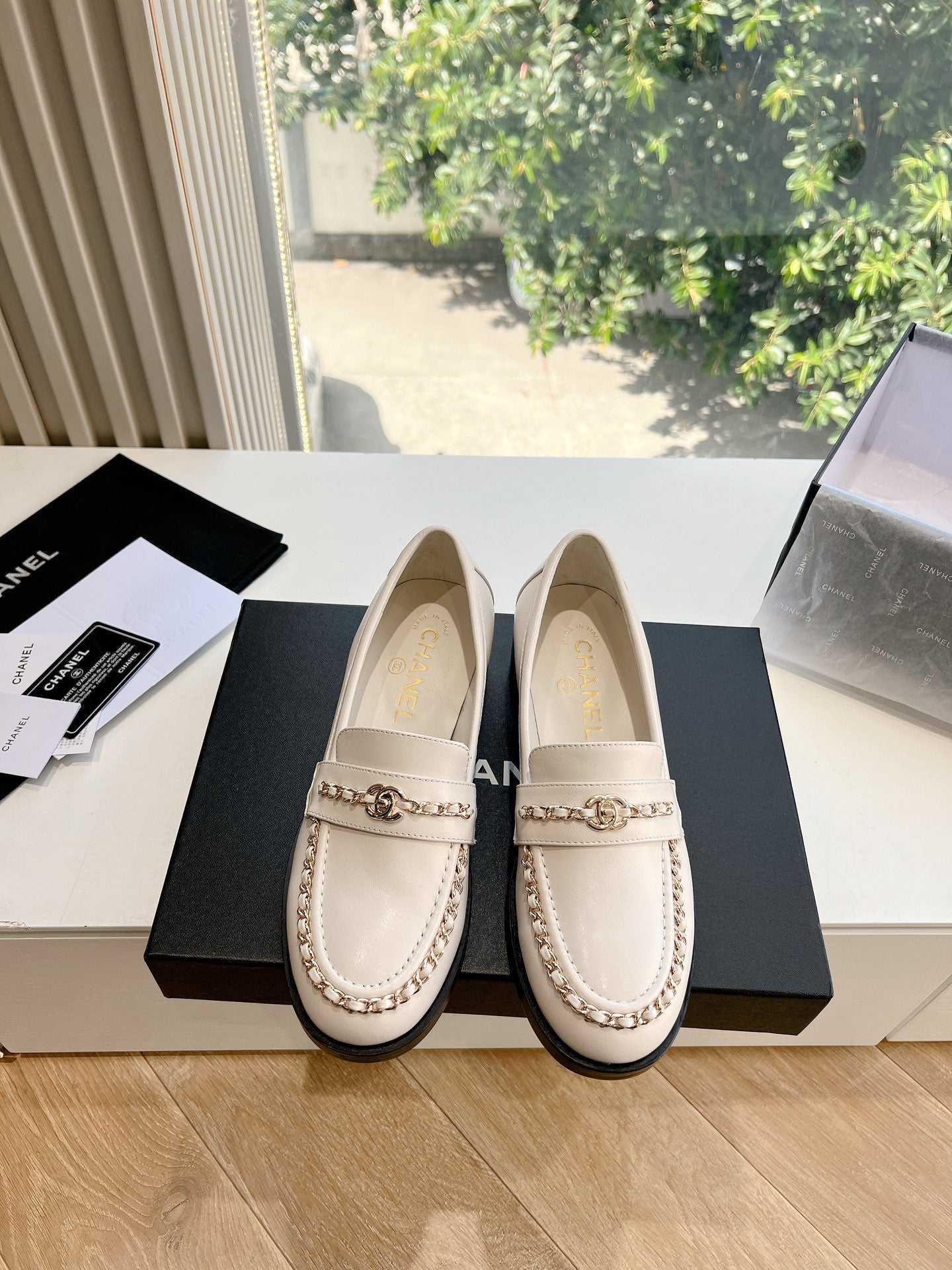 CC Moccasins White Chain Lambskin
