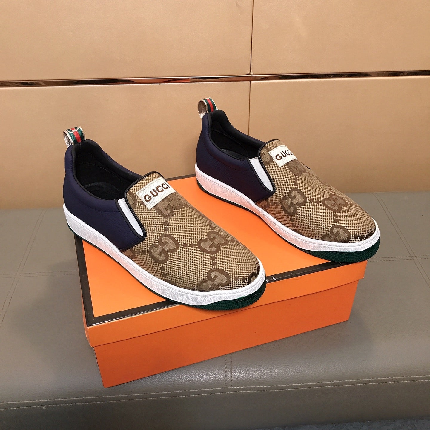 GG Men's Slip On Brown Cowhide Printed Fabric 525192