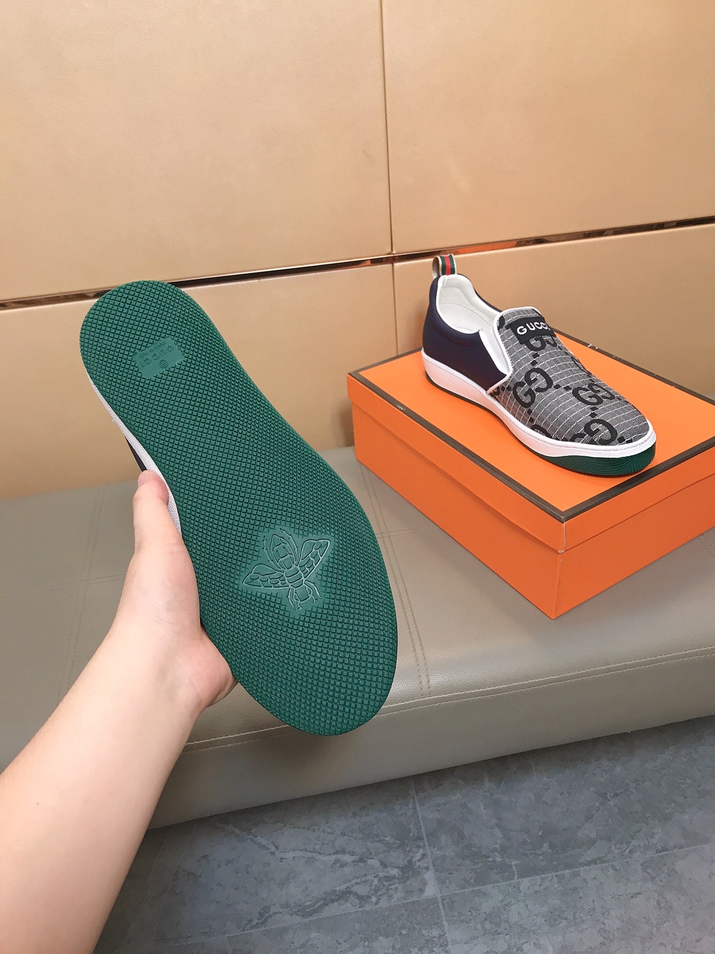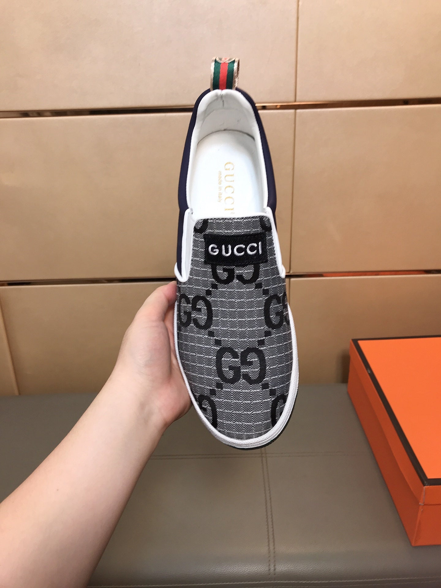 GG Men's Slip On Grey Cowhide Printed Fabric 525191