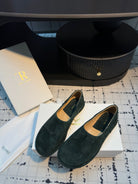 The Row Flat Loafer Dark Olive Green Cow Suede 334451