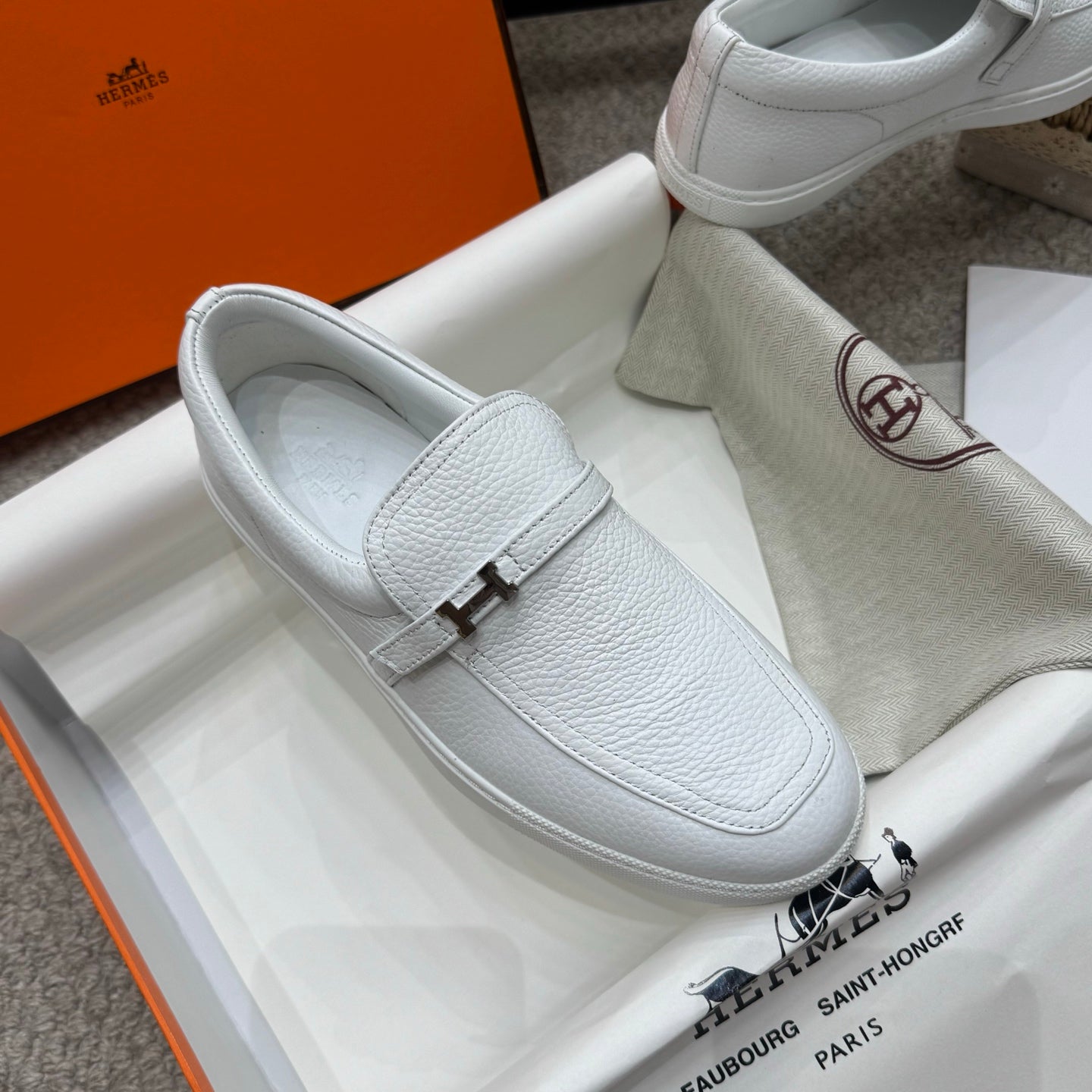HM Job Loafers White Grain Cowhide 523215