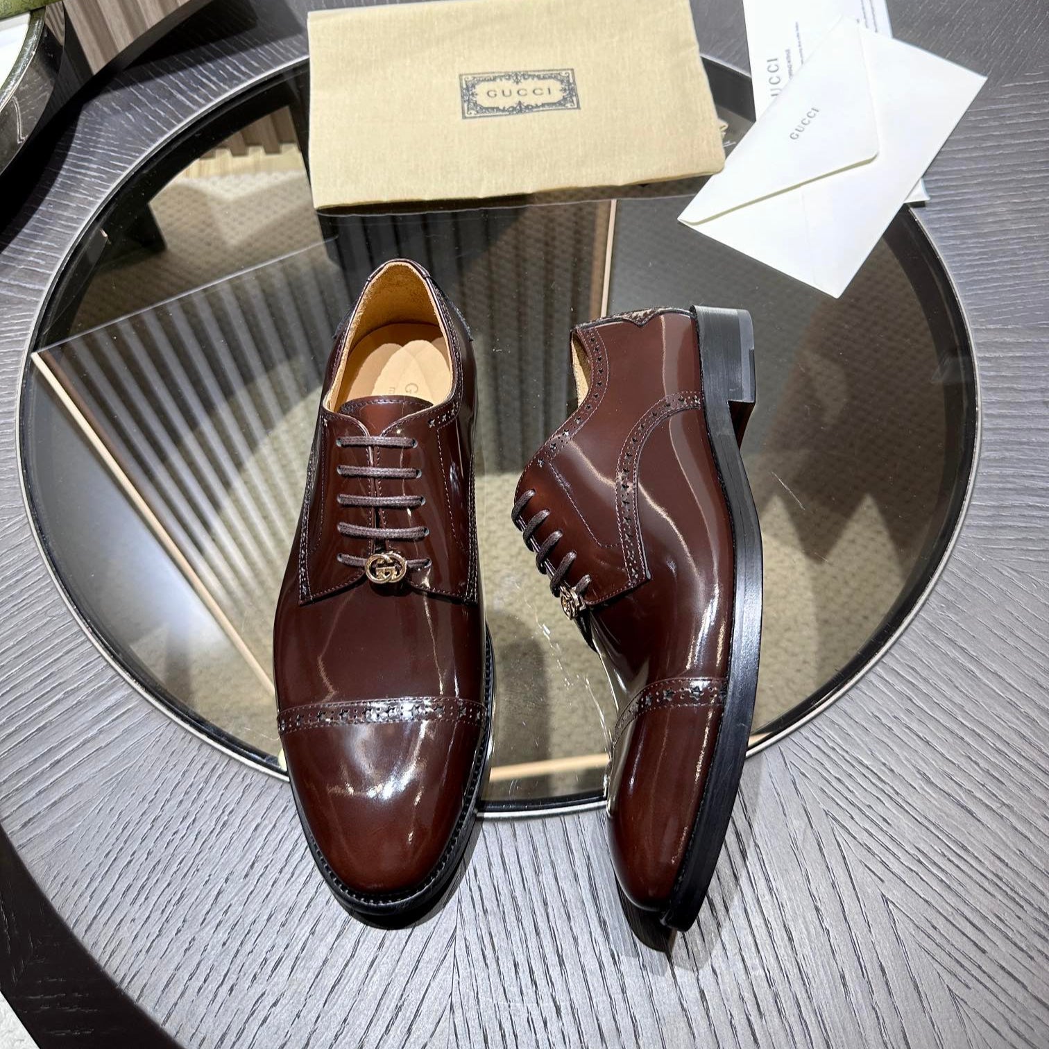 GG Men's Dress Shoe Dark Brown Patent Leather 140493