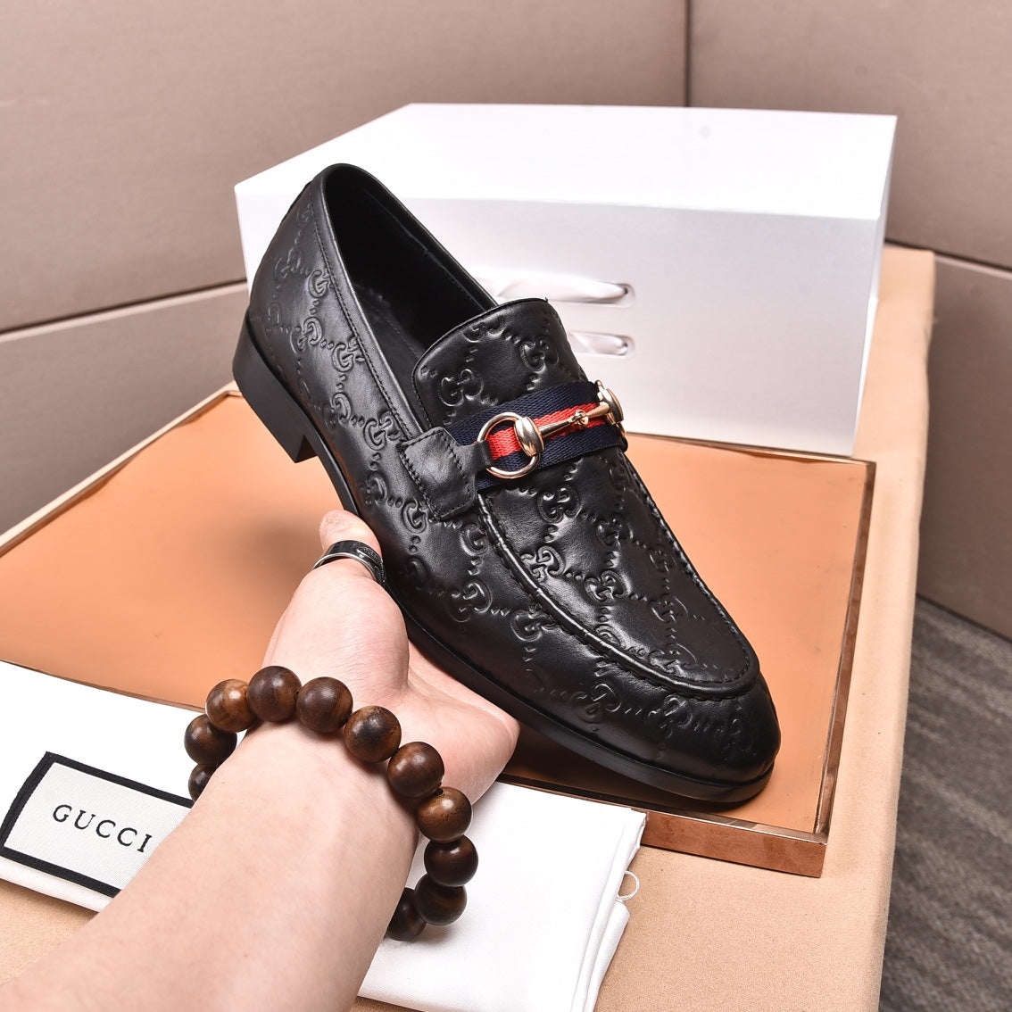 GG Men's Loafer Black Embossed Cowhide 876273