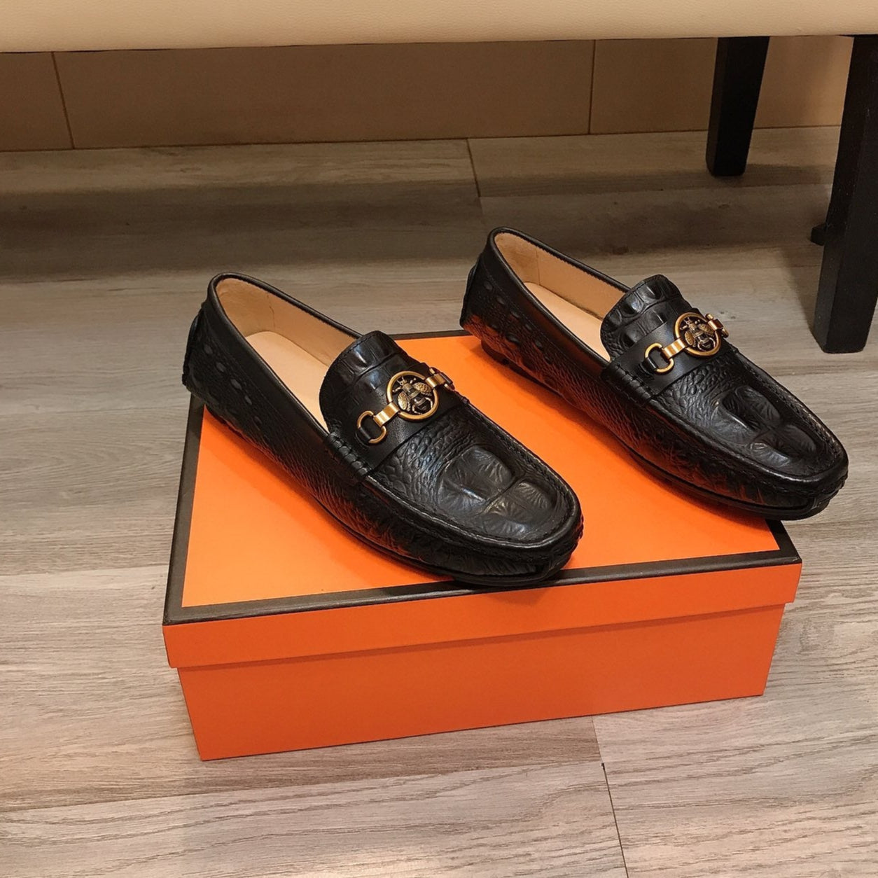 GG Men's Slip on Bee Black Cowhide 533939